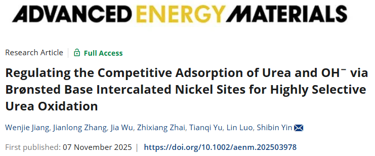 近日,我院电化学能源材料团队在电催化氧化尿素领域取得新进展。该成果以“Regulating the Competitive Adsorption of Urea and OH− via Brønsted Base Intercalated Nickel Sites for Highly Selective Urea Oxidation”为题,发表在Advanced Energy Materials上。该论文的第一作者为化学化工学院2022级博士研究生蒋文杰,通讯作者为化学化工学院教授尹诗斌,taptap苹果安装是唯一通讯单位。