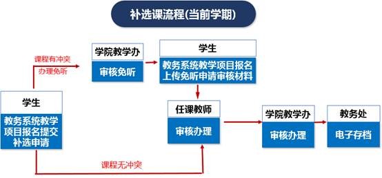3.课程有冲突,且符合免听条件的课程,学生在办理免听手续后作为附件上传教务管理系统后方可申请补选。