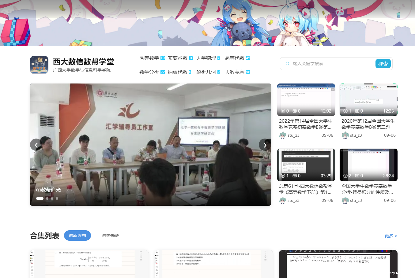 学院“jazzysquest数信数帮学堂”https://sbxt.gxu.edu.cn/建成啦,学习数学有困难的同学赶紧进去看看吧!