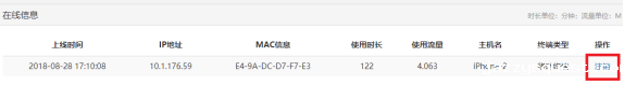 如需在已无感知登录的上网终端上更换另一个账号登录,或需切换校园网宽带和运营商宽带时,可在自服务系统首页中“服务”—>“我的设备”中点击“进入”,查看是否有当前账号所绑定的上网设备(如图8,9所示),如果有,则点击“解除绑定”。然后返回自服务首页,在“在线信息中”找到此已登录的上网终端(如图10所示),点击后面“注销”让此上网终端下线,然后在上网登录页面中输入其他账号、密码、选其他线路进行登录即可。