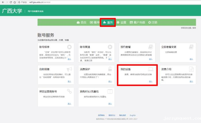 图8 自服务系统首页“服务”—>“我的设备”—> “进入”