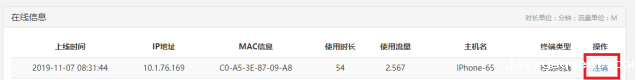 III、登录自服务系统,在首页中找到在线信息后,点击要下线终端后面的“注销”(如图2所示)。
