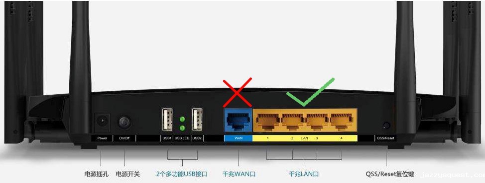 7. 非pppoe上网的连线方式:输入线勿接路由器的wan口,输入线和输出线都接在lan口。