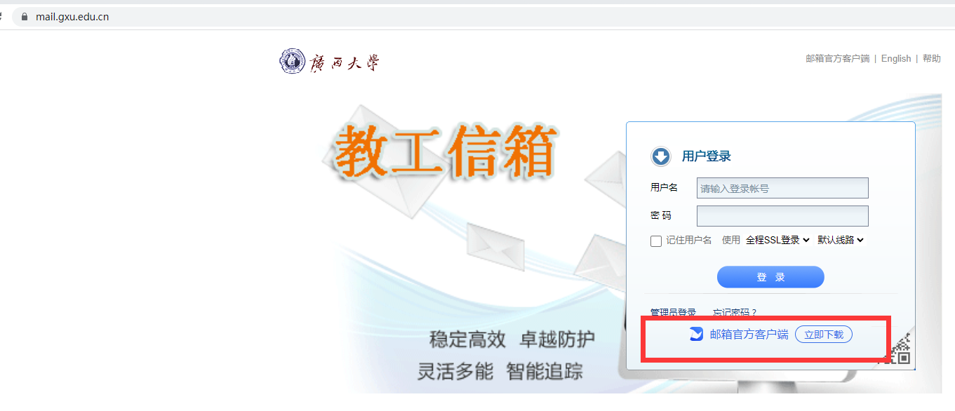 12)对于部分邮箱需要短时授权给其他人登录的情况,可临时启用客户端授权密码功能,单独为某个终端的客户端设置一个限时密码,有效期过后,改密码失效,则该终端也无法访问该邮箱,详情请点击https://net.gxu.edu.cn/info/1336/2903.htm 查看“客户端密码的使用教程”