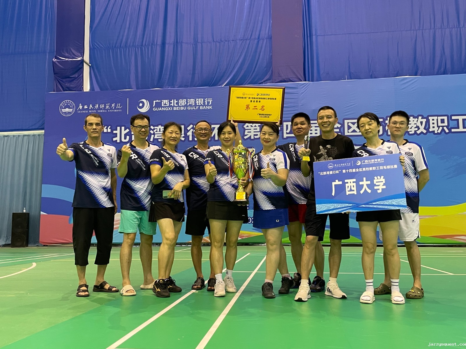 5月31日至6月3日,由自治区教育厅主办、广西民族师范学院承办、广西学校体育卫生艺术学会协办的“北部湾银行杯”第十四届全区高校教职工羽毛球比赛在崇左举行,全区48所高校约700人参赛。我校组队参加了本届比赛,副校长刘向、总会计师宁旭初参加校长组比赛,教职工郑丹嵩、王卫权、李秉健、陈柏轩、刘志中、黄学创、王丽、李莉、邓春阳、梁越秀、林清宇、孙静参加混合团体组比赛。在全体队员的团结协作、顽强拼搏下,经过三天的激烈角逐,我校代表队获校长组双打季军,混合团体组亚军。