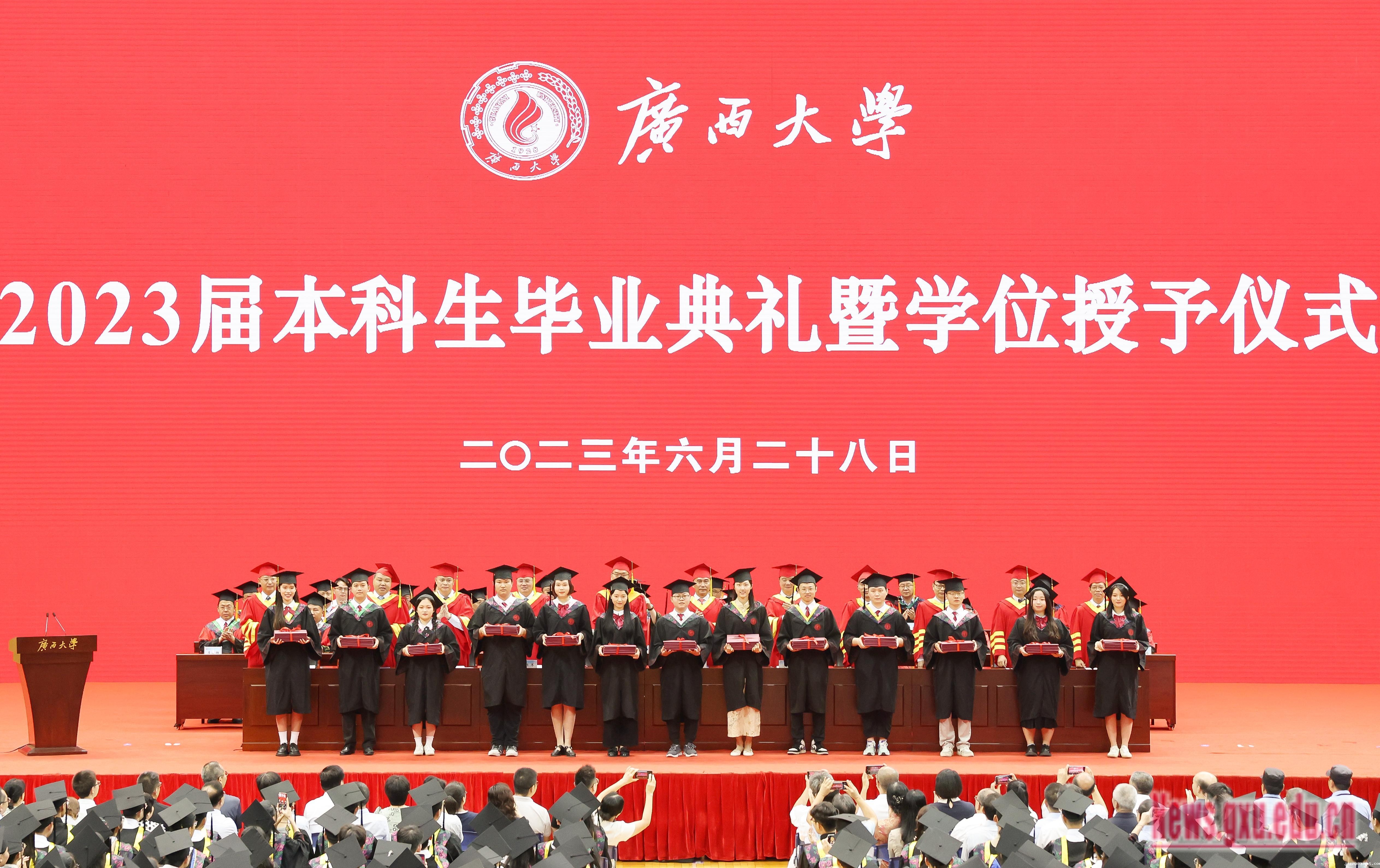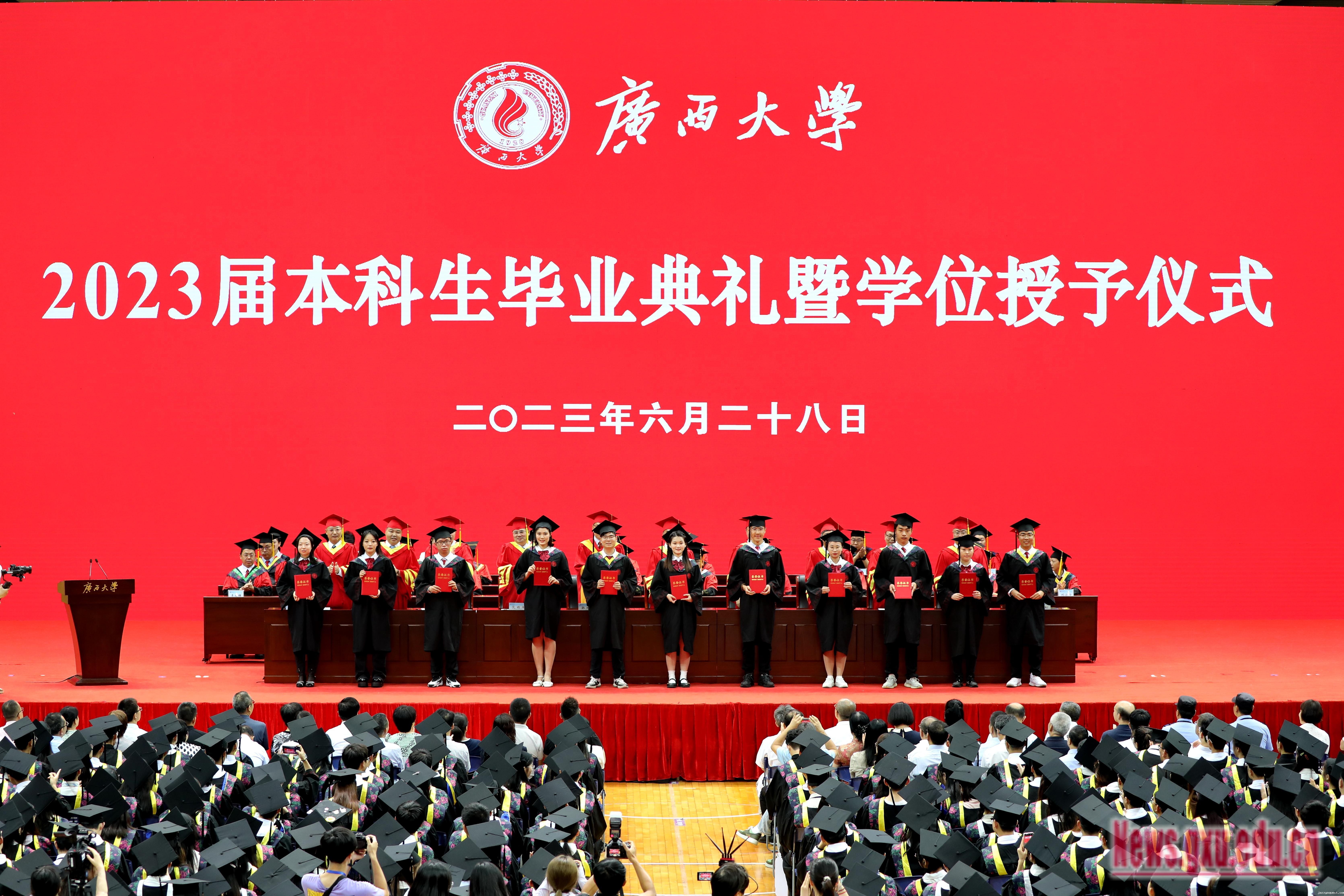 荷香四溢,凤凰花开。6月28日,我校在西校园体育馆为2023届6005名本科生举行毕业典礼暨学位授予仪式。自治区政协副主席、校党委书记王乃学,教育部党建联络员李继兵,校党委副书记、校长韩林海,副校长马少健、范祚军,校纪委书记吕逸,副校长刘向、田利辉、肖建庄,总会计师宁旭初,校学位评定委员会委员、教师代表、校友代表、毕业生代表出席典礼仪式,副校长、教务长冯家勋主持毕业典礼暨学位授予仪式。