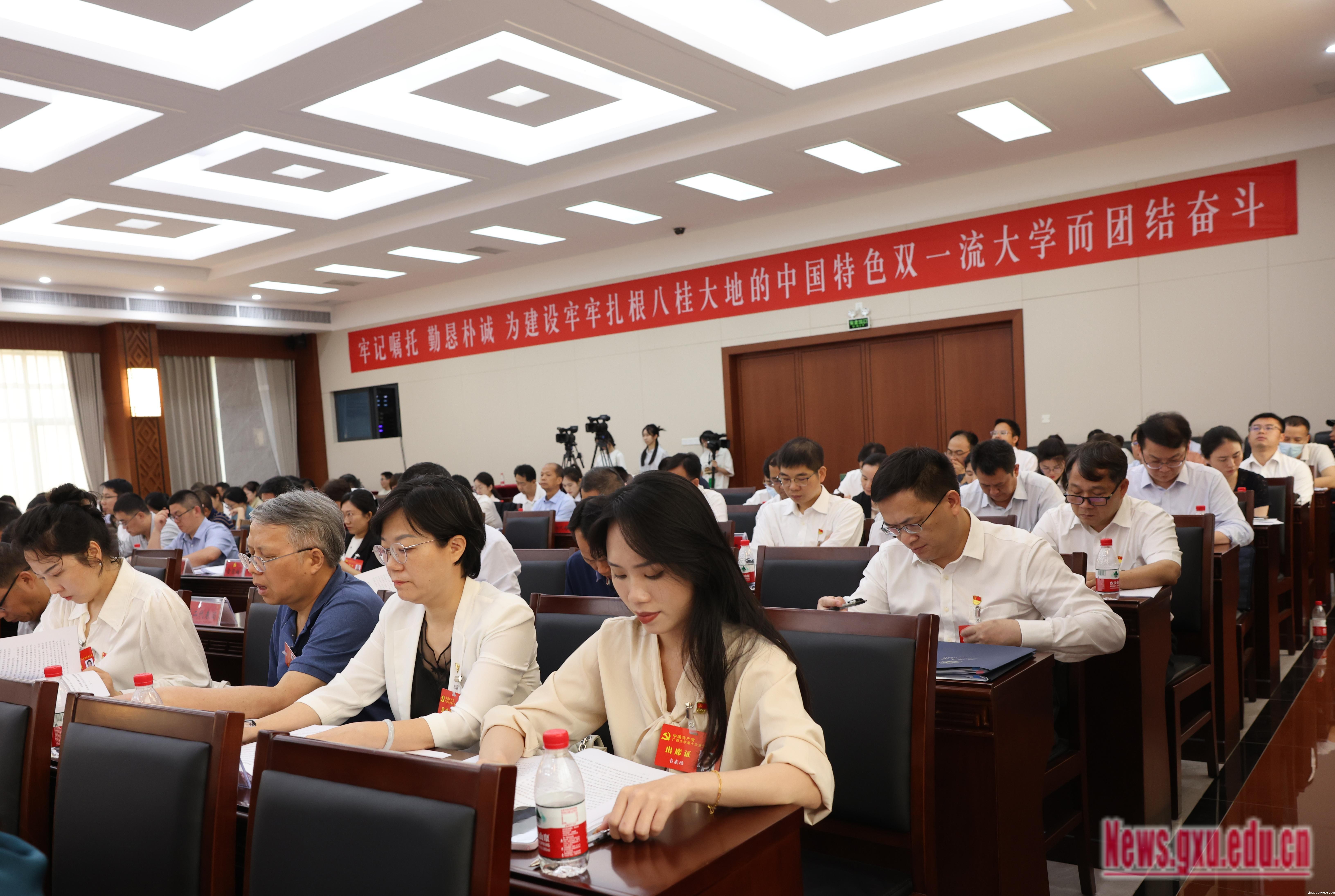本次大会主题是深入学习贯彻习近平新时代中国特色社会主义思想和党的二十大精神,全面落实教育强国战略,创新创造、奋勇争先、全面一流,服务广西、贡献西部,建设让党放心、让人民满意的牢牢扎根八桂大地的中国特色“双一流”大学,为全面建设社会主义现代化国家、全面推进中华民族伟大复兴而团结奋斗。