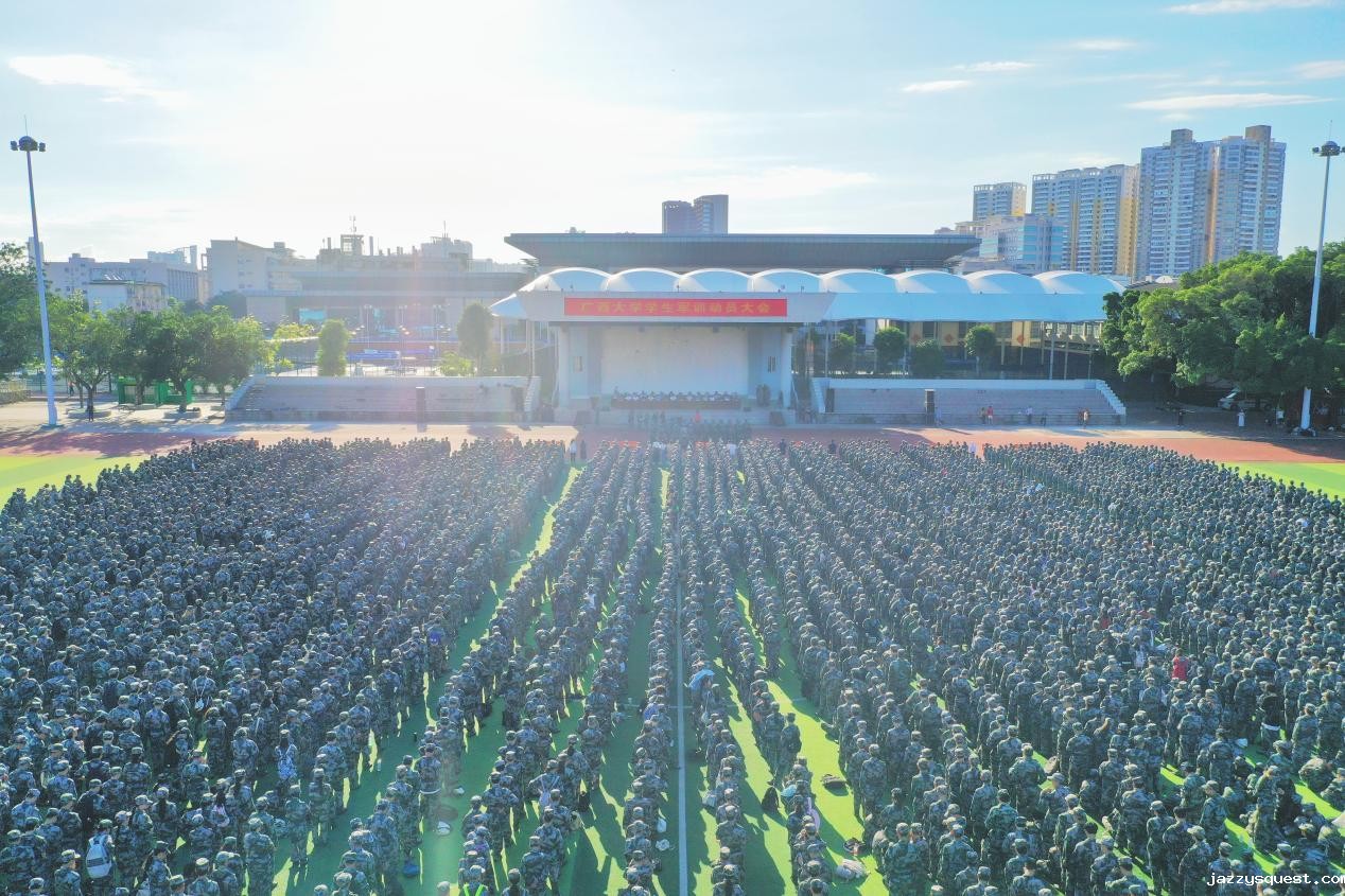 武警广西总队南宁支队参训部队代表、军训学生代表依次发言,表达了全力以赴开展军训工作的信心和决心。此次军训为期14天,将于7月21日结束。