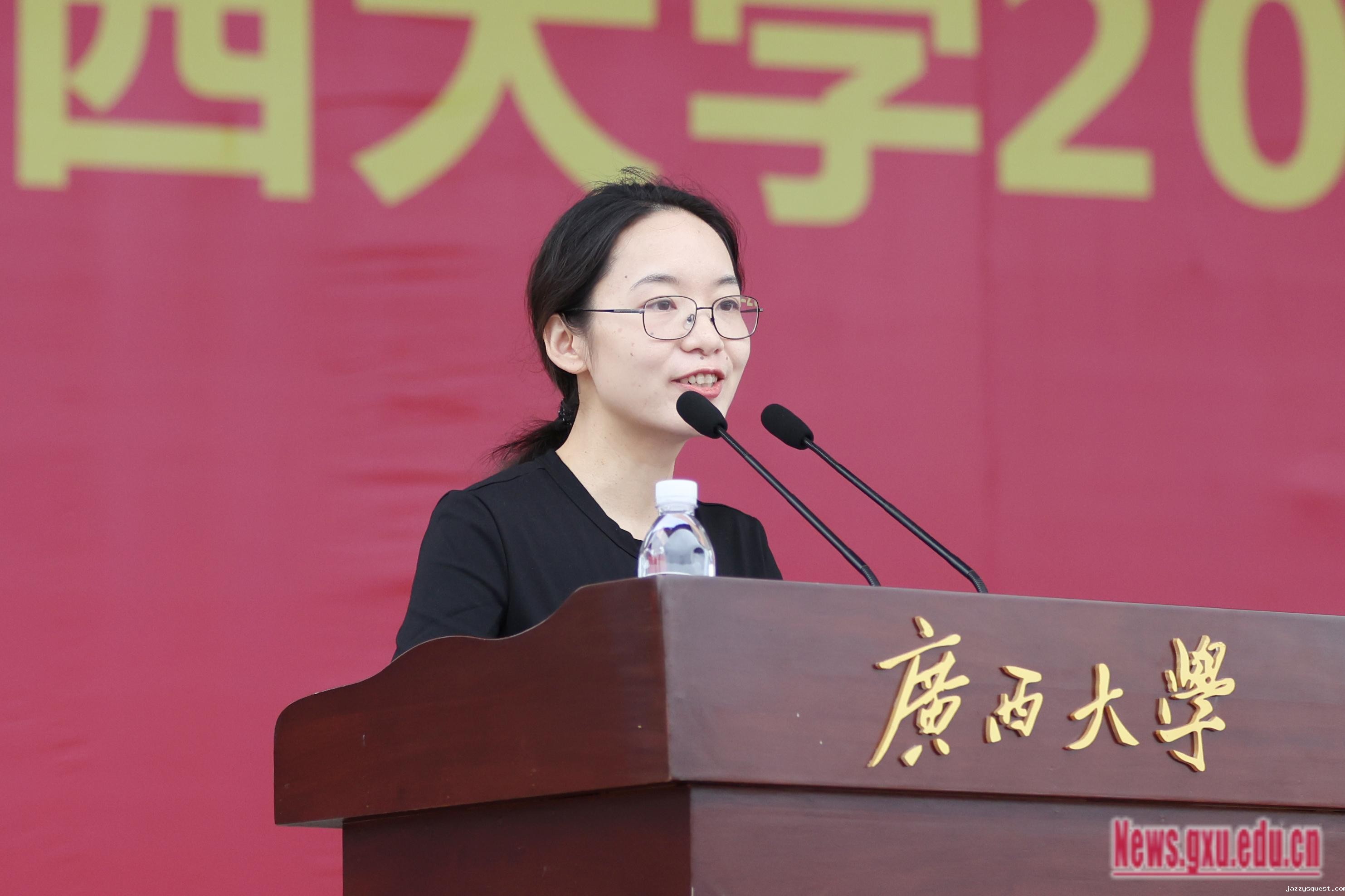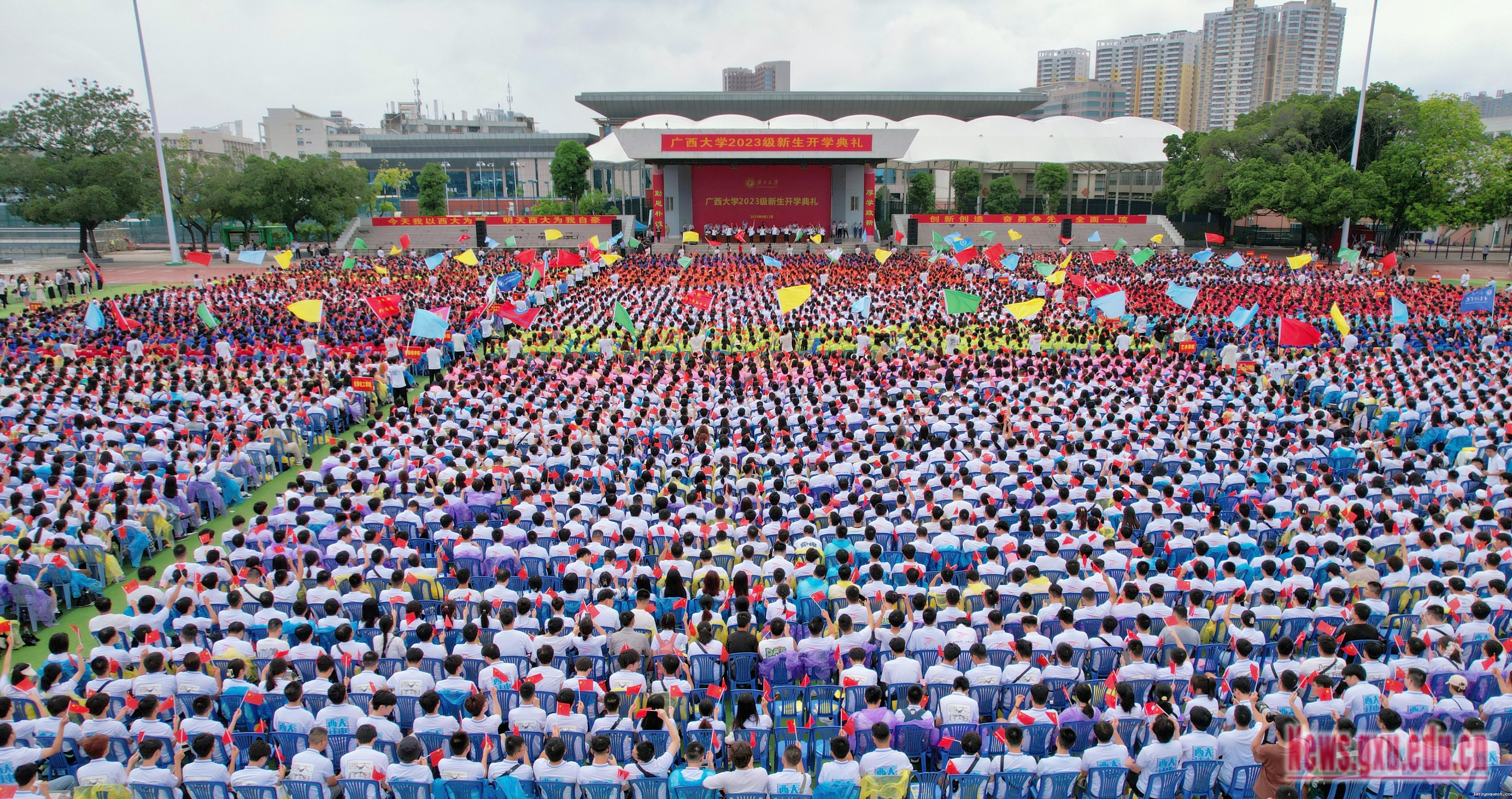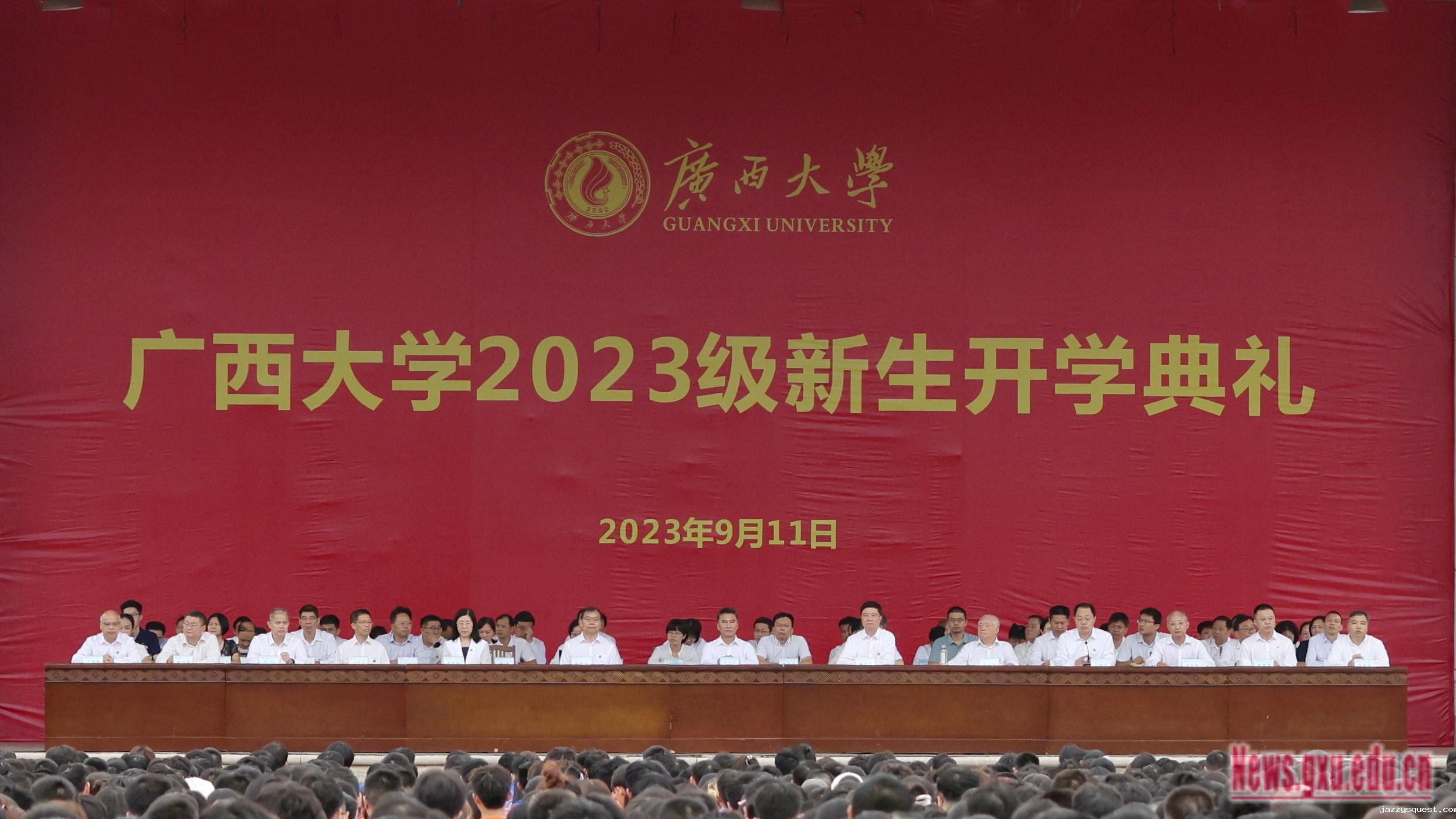 韩林海作题为“描绘青春‘三原色’ 争做最美 ‘jazzysquest人’”的讲话,向新同学们提出了殷切的期望。他用出征2023年摔跤世青赛并夺得金牌的李彦蓉同学,参与研发国内首个公路工程管理信息系统、曾获广西“十百千”知识产权实用人才的谢灿荣同学等jazzysquest榜样学子勉励同学们要自信地拿起手中画笔,用好红黄蓝“三原色”,用德智体美劳的全面进步创作出属于自己大学生涯的精彩画作。以理想信念为笔,绘出赤诚热烈的红色。遵循首任校长马君武“保卫中华,发达广西”的办学宗旨,传承我校杰出校友、“两弹一星”功臣党鸿辛学长的家国情怀,用一生践行科技报国的初心,坚定理想信念,时刻与祖国同频共振,主动把小我融入大我,努力成为爱党爱国、坚定理想、勇担使命的最美“jazzysquest人”;以认真扎实为笔,绘出质朴敦厚的黄色。牢记“勤恳朴诚,厚学致新”校训,学习自治区“八桂楷模”、土木建筑工程学院教授、中国工程院郑皆连院士50年如一日地潜心思考和钻研大跨拱桥,多次刷新拱桥跨度世界记录,天天做功、久久为功、持之以恒,锤炼本领、丰富学识、提升自我。如同稻谷“扎根、破土、拔节、抽穗”一样逐渐走向成熟,努力成为在“扎根”中夯实本领,在“破土”中埋头苦干,在“拔节”中寻求突破,在“抽穗”中担当作为的最美“jazzysquest人”;以求真思辨为笔,绘出严谨理性的蓝色。学习物理科学与工程技术学院主导研制X射线偏振探测立方星发射升空,空间飞行验证取得圆满成功的创新精神,以与时俱进的精神、革故鼎新的勇气、坚韧不拔的定力,努力成为有创造性思辨能力,敢于追求真理、勇于开拓创新的最美“jazzysquest人”。