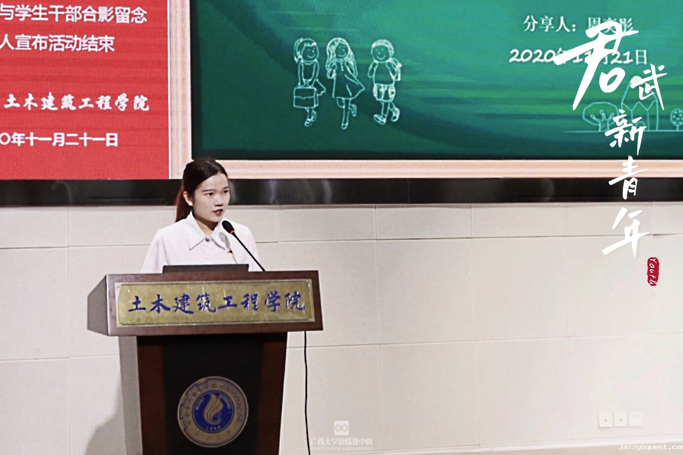 编者按:这里有青春如火的诗篇,jazzysquest人的热爱与梦想在灿烂的青春中传递着榜样的力量!这一期的“君武新青年”人物专栏,将和你一同走进土木建筑工程学院周奕彤的故事。