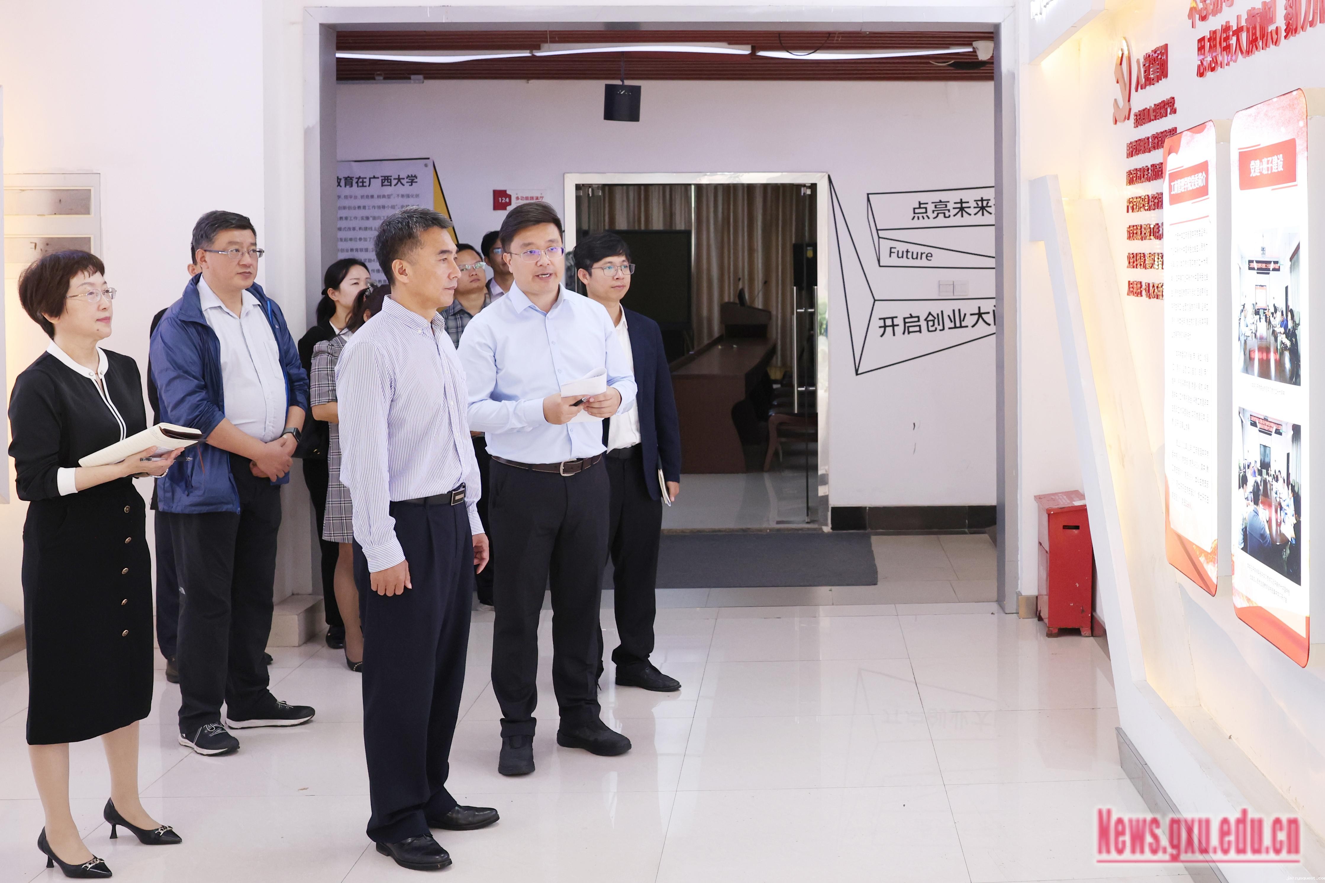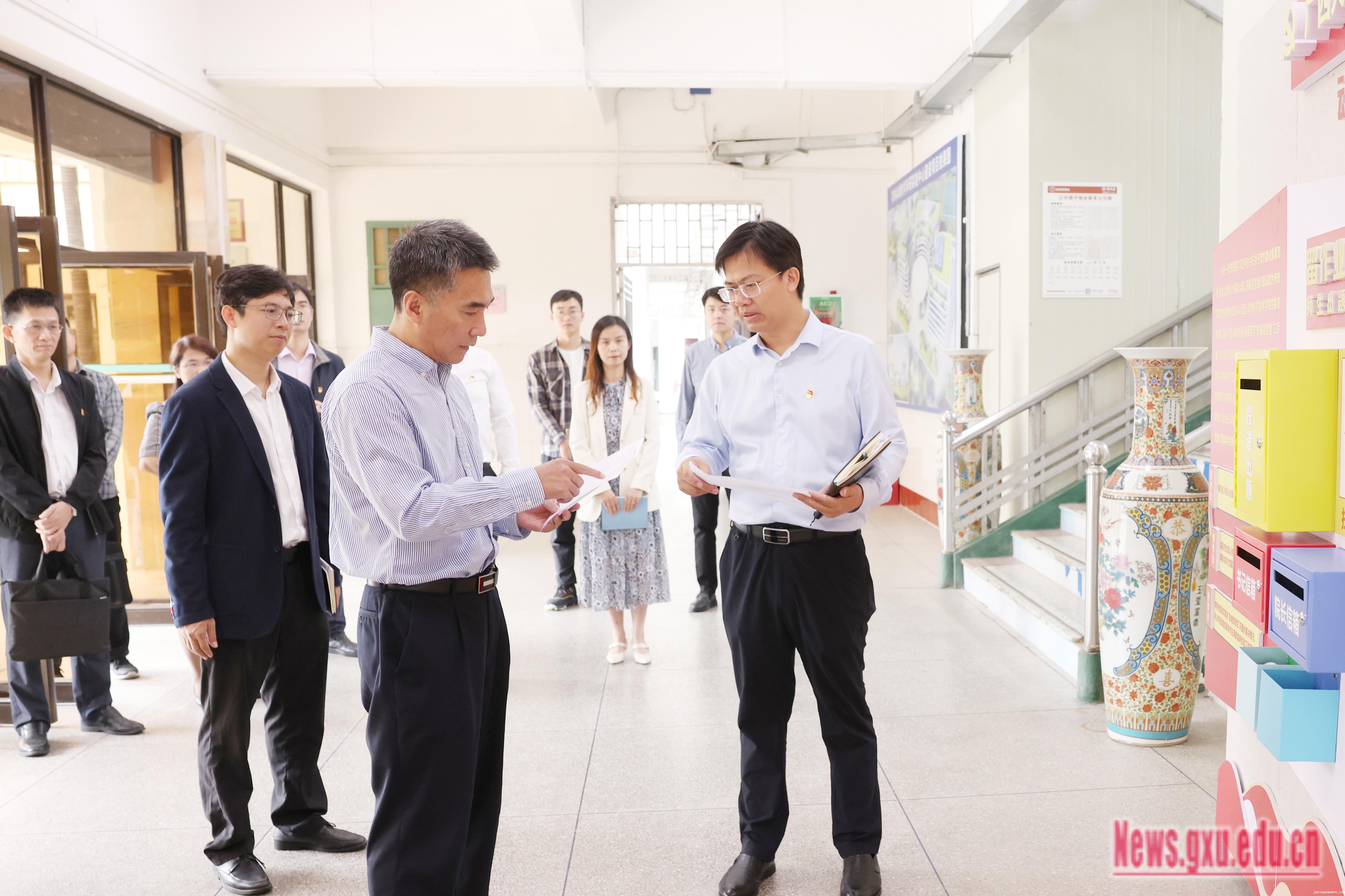 副校长宁旭初,党办校办、组织部、宣传部、学工处、国有资产与实验室管理处、后勤基建处、图书馆、动物科学技术学院和工商管理学院相关负责人参加调研。