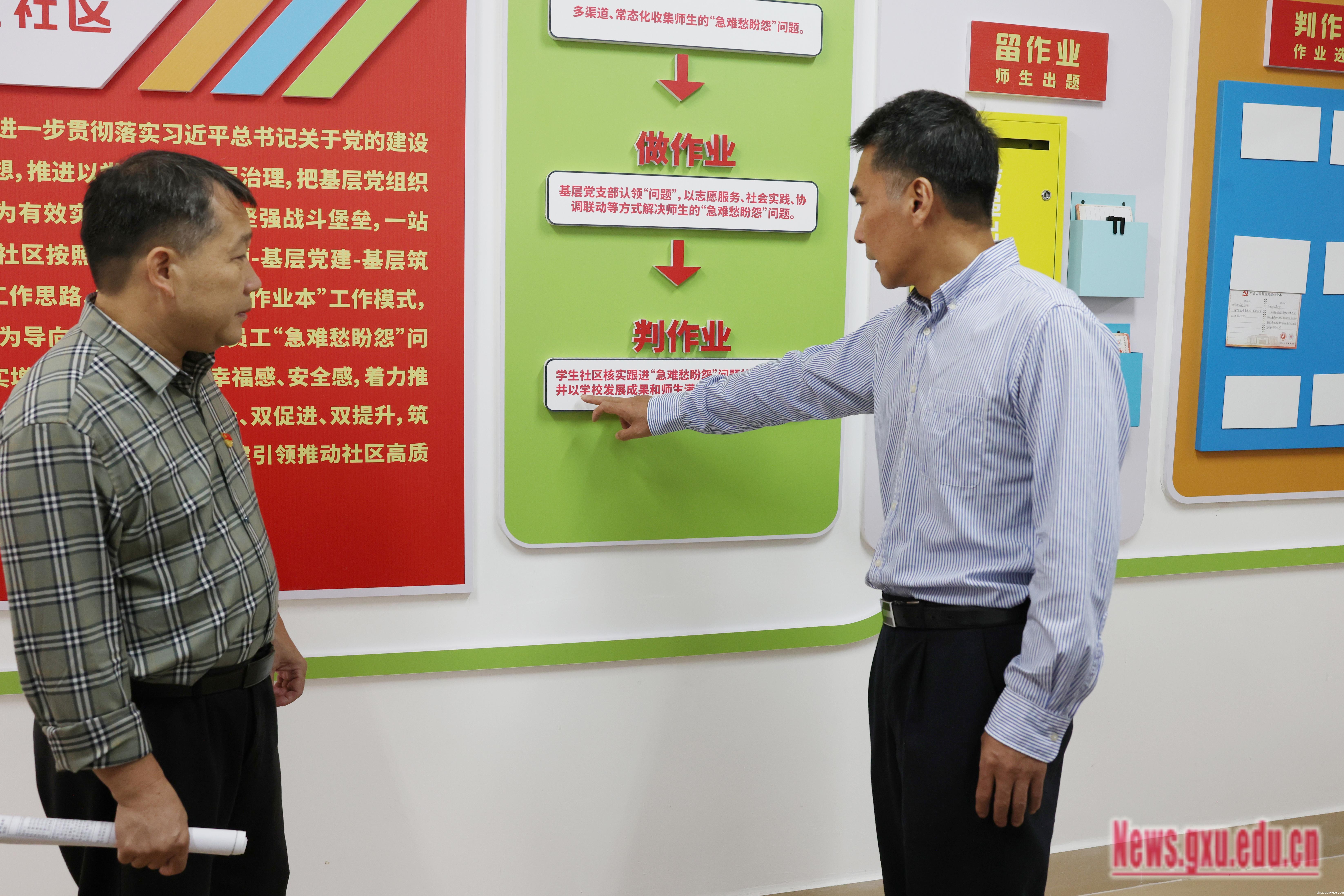 “使用图书馆插座遇到什么问题吗?插座装在哪个地方用起来比较方便?”10月11日,自治区政协副主席、校党委书记王乃学到动物科学技术学院、“一站式”学生社区、工商管理学院、图书馆等开展实地调研、深入了解基层党建“作业本”推进情况,指导各级党组织真正了解和解决好师生“急难愁盼怨”问题。