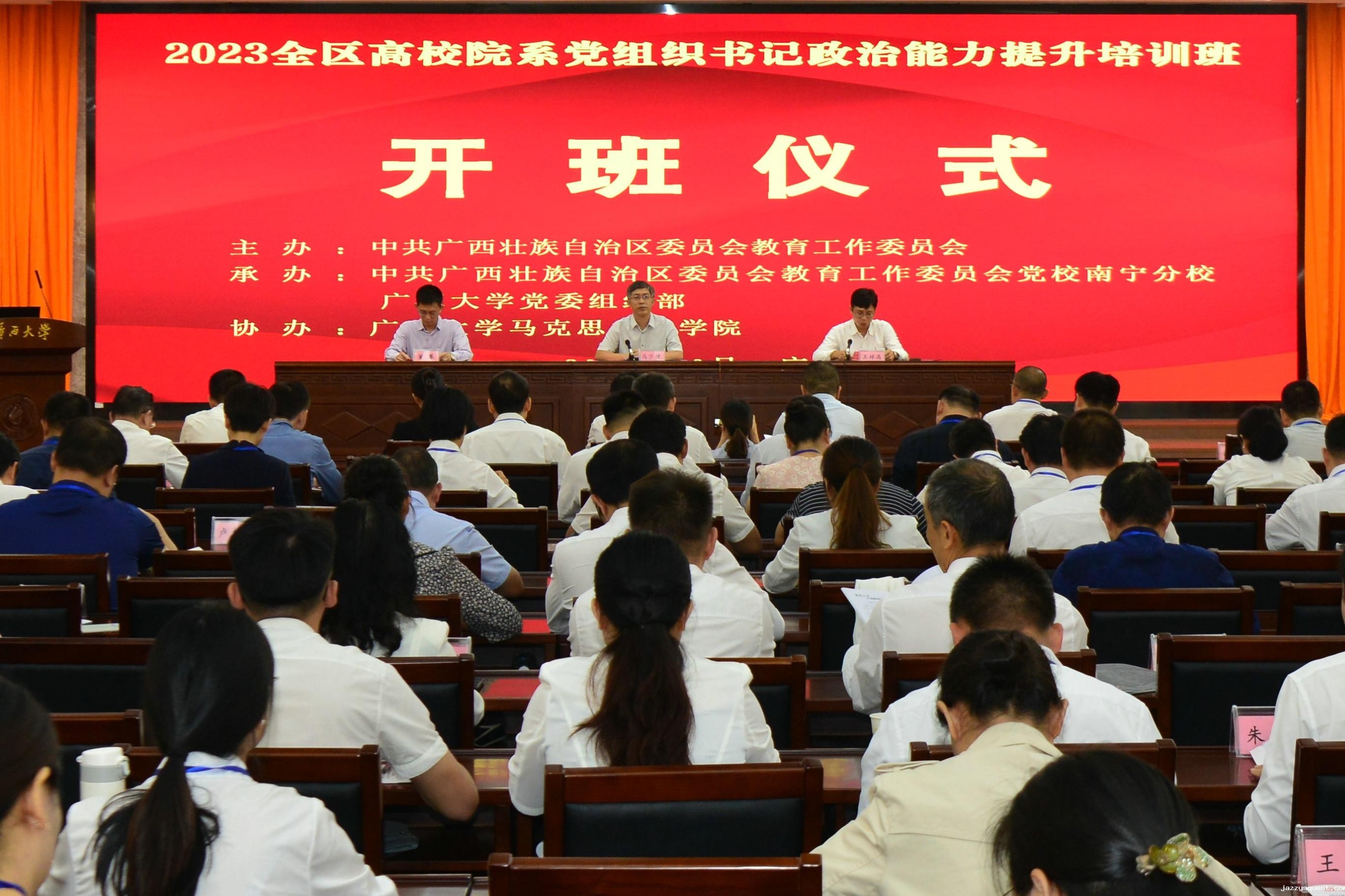 近日,由自治区党委教育工委党校主办,自治区党委教育工委党校南宁分校(设在taptap苹果安装)举办的2023年全区高校院系党组织书记政治能力提升培训班在我校开班。我校党委副书记马少健出席开班仪式并作开班讲话,来自全区高校的100名院系党组织书记参加培训。