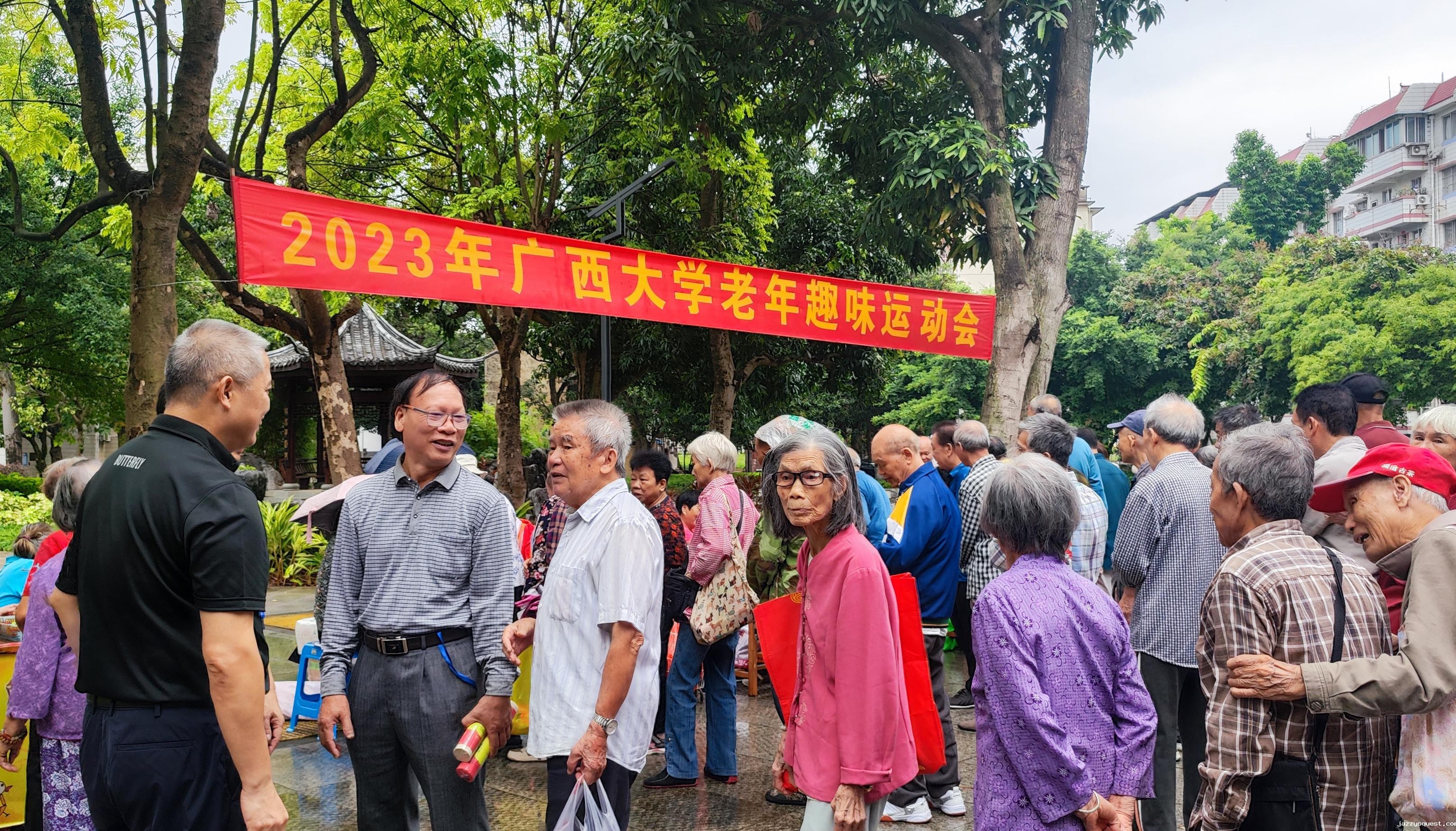 秋高气爽,天朗气清。壮乡绣球、足球比赛、幸运套圈、鳄鱼吞珠、恐龙归巢、棒夹银珠、数字组合、愿者上钩等14个比赛项目备受老同志欢迎。活动开始前,部分老同志已来到赛场,相互问候、交流,讨论感兴趣的项目。现场热闹非凡,趣味十足,老同志们摩拳擦掌,积极参加各项目的游戏角逐,各游戏队伍大排长龙,围观人员络绎不绝。老同志们比风格、赛技艺、叙友谊,互相鼓励、互相加油,谈笑声、欢呼声不绝于耳,充分展示了老当益壮、健康向上的精神面貌。