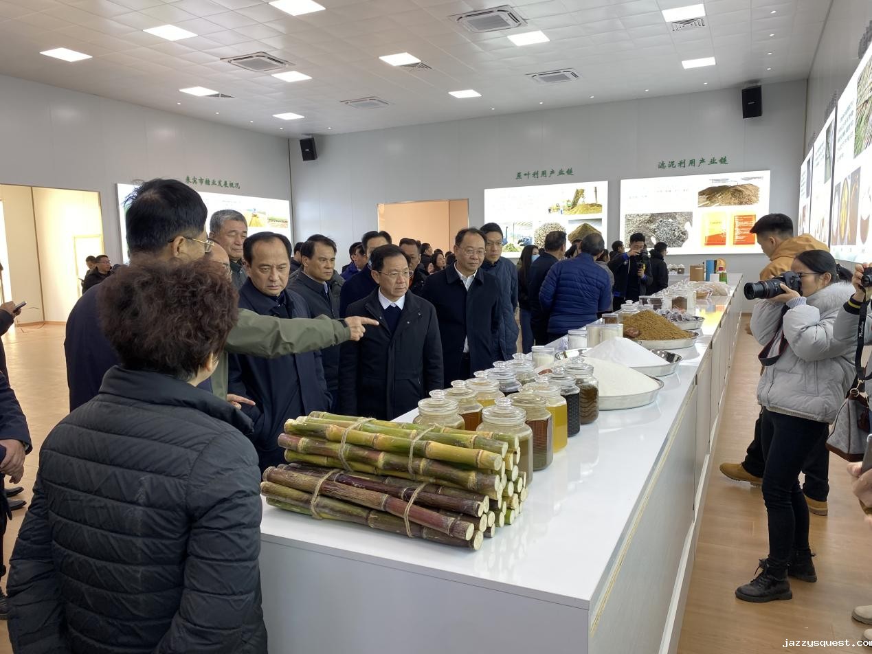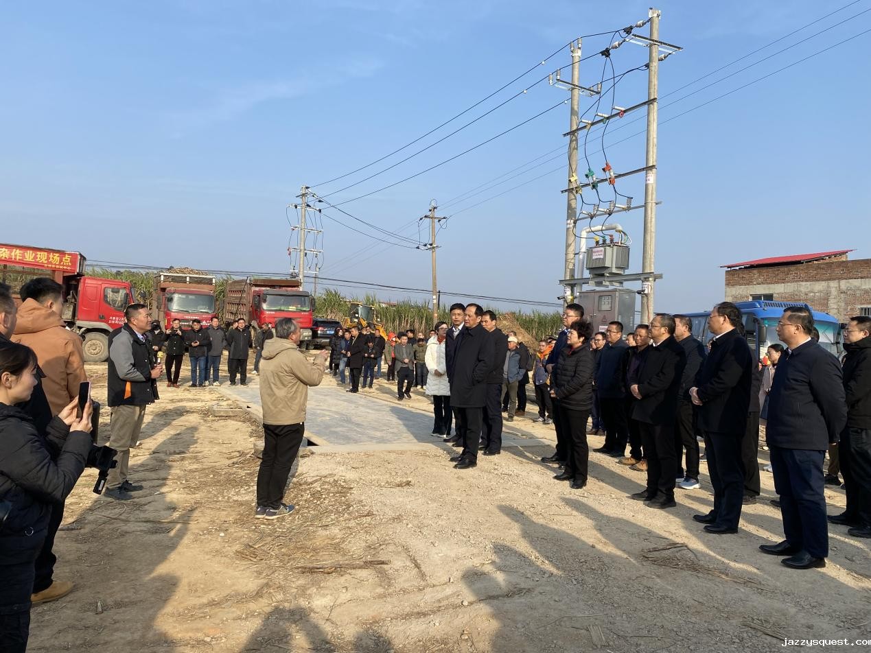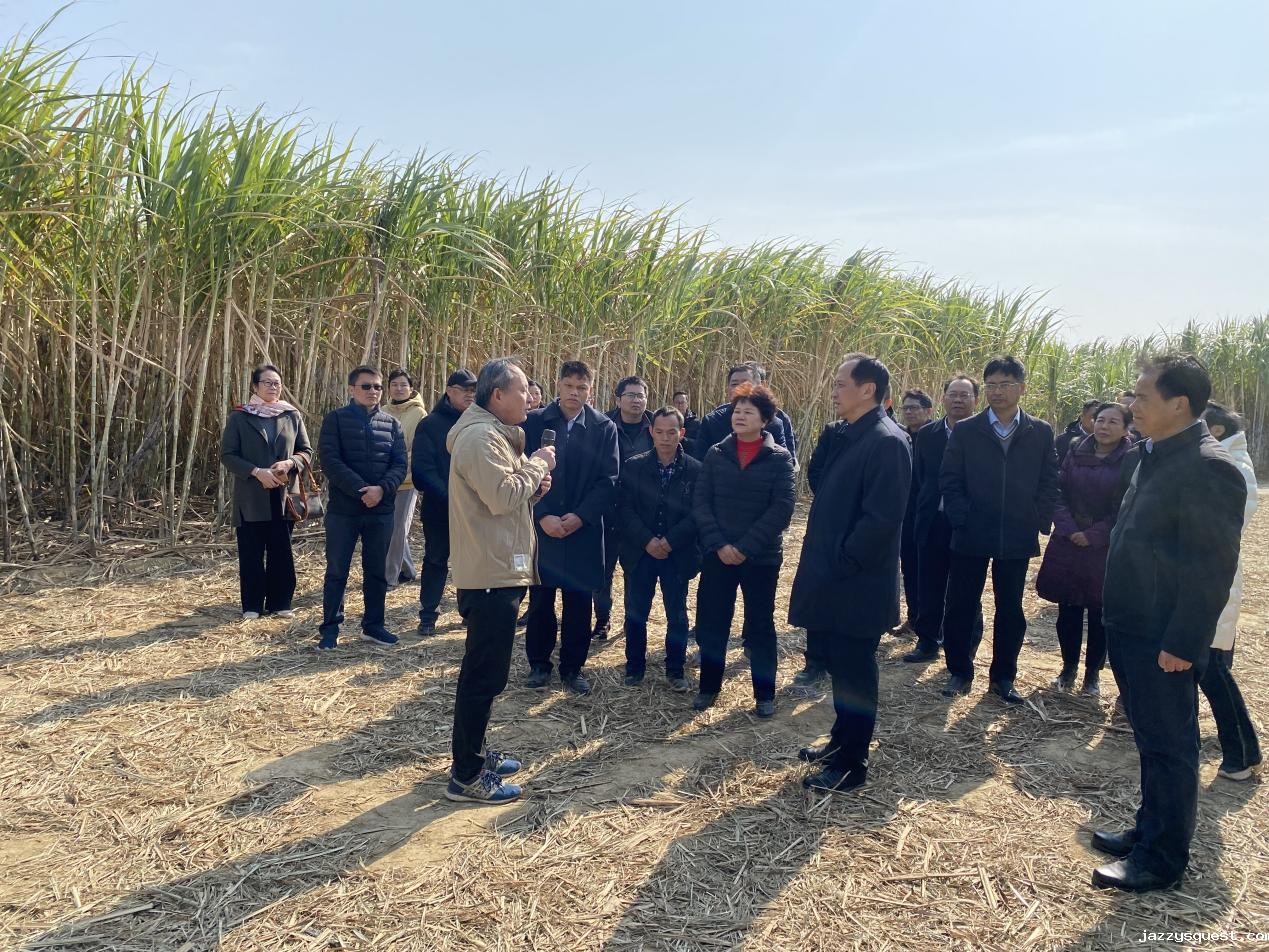 于文进一行先现场观摩了柳工分步式除杂站作业演示。随后到来宾市国家现代农业产业园黄安优质“双高”糖料蔗基地观摩了甘蔗收获和种植机具作业演示,同时重温习近平总书记重要指示精神。最后现场参观了广西来宾东糖凤凰有限公司,观摩学习甘蔗压榨技术情况,了解甘蔗相关产品的情况。
