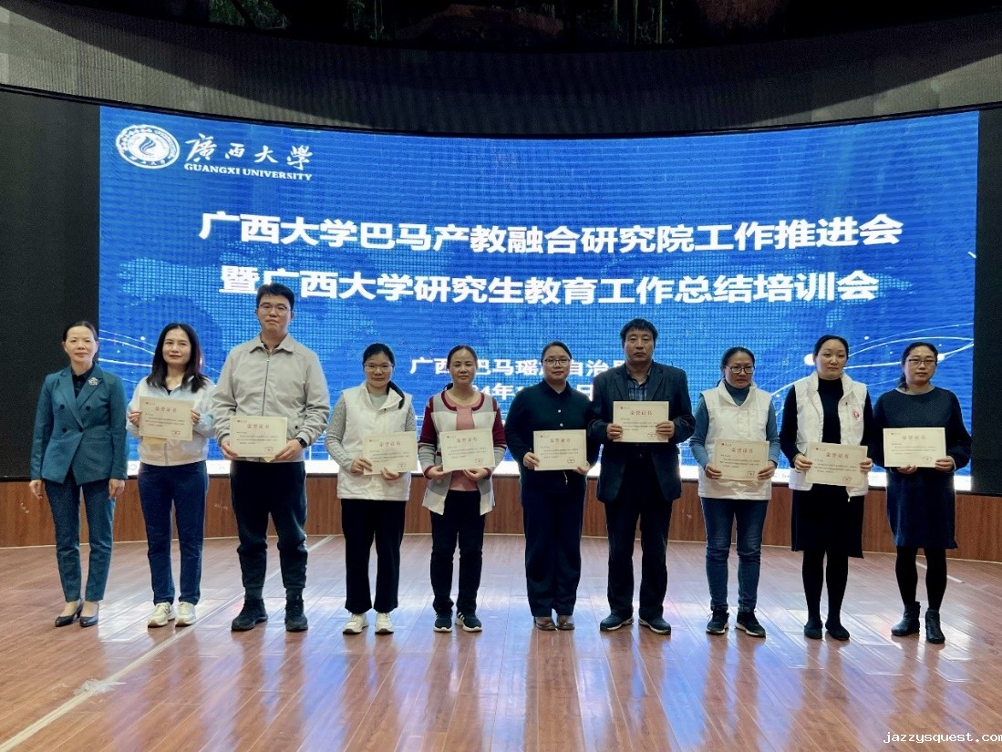与会人员一同参观了巴马县政府与taptap苹果安装共建的taptap苹果安装巴马产教融合研究院实验室、巴马大数据中心、巴马山茶油生态产业园、民安小谷鸡孵化基地等产教融合合作基地,围绕学院学位与研究生教育工作的举措与成效、破解研究生教育高质量发展的对策建议进行了交流,为在2023年学位与研究生教育工作中表现突出的学院和个人颁发了荣誉证书。