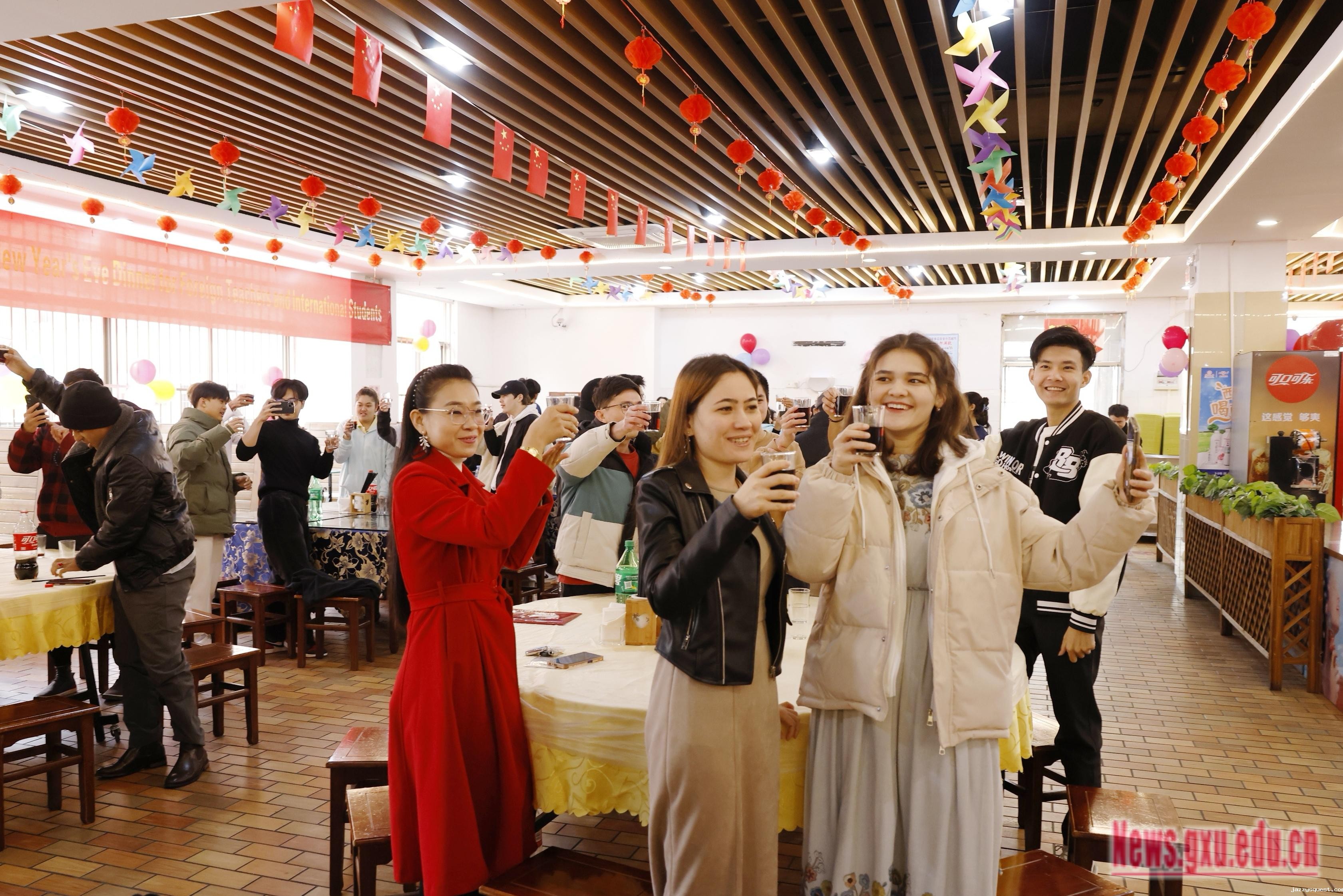 在东苑餐厅,中外师生共同品尝了由学校厨师团队精心准备的中国菜肴,包括象征团圆的饺子、代表丰收的鱼肴以及寓意吉祥的各式热菜和冷盘,在品味中国传统美食的同时体验一个祥和幸福的中国年。