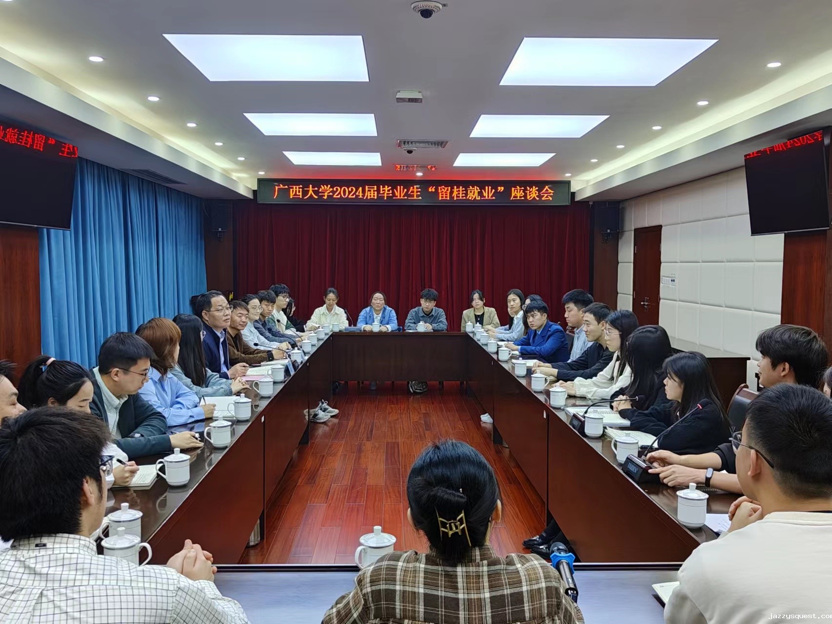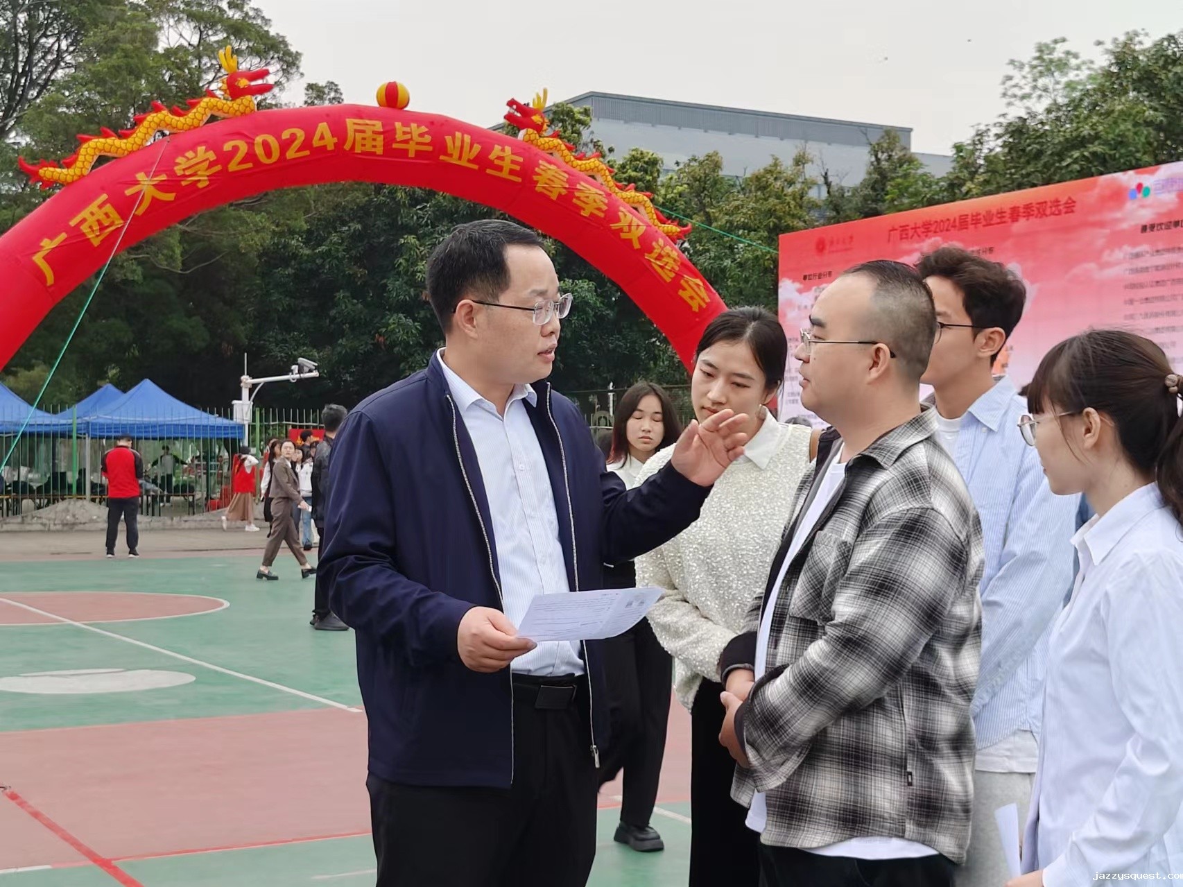 双选会前,我校举办了2024届毕业生“留桂就业”座谈会,马献力与毕业生代表聊思想、谈就业,鼓励毕业生积极响应自治区党委号召,投身到广西的经济建设、社会发展中,勇担时代重任,选择“留桂就业”,让青春在建设壮美广西的征程中闪耀璀璨光芒,奔向美好未来。