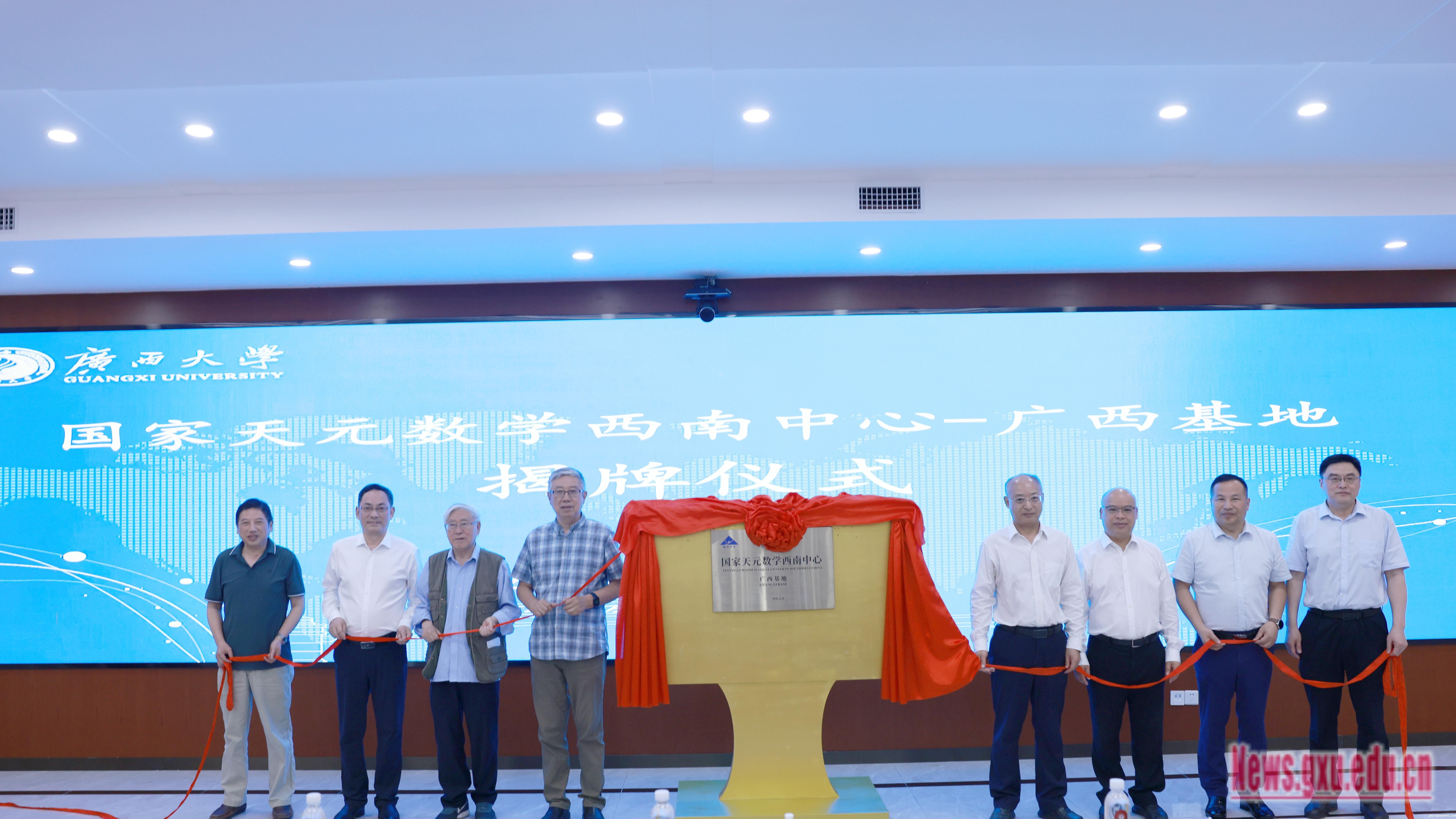 国家天元数学西南中心—广西基地学术委员会、执行委员会,四川大学数学学院,我校党办校办、科研院、数学与信息科学学院、广西数学研究中心等单位相关负责人参加揭牌仪式。