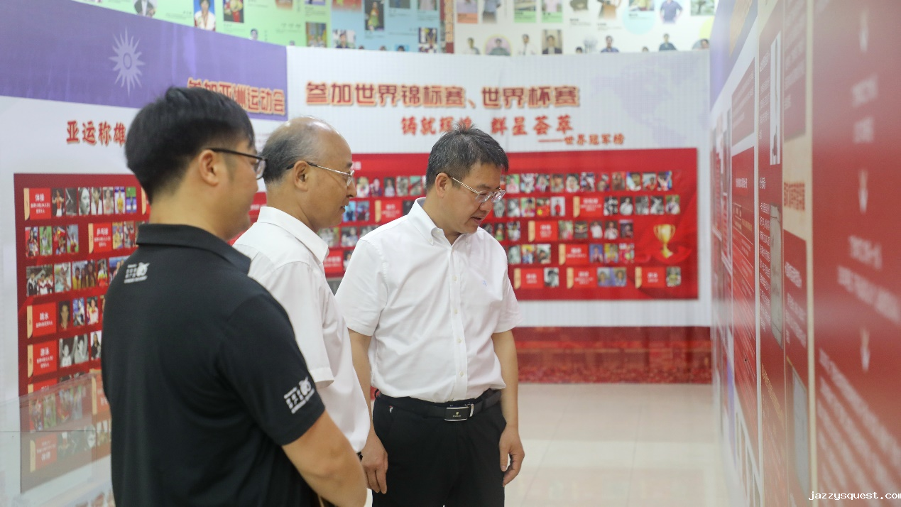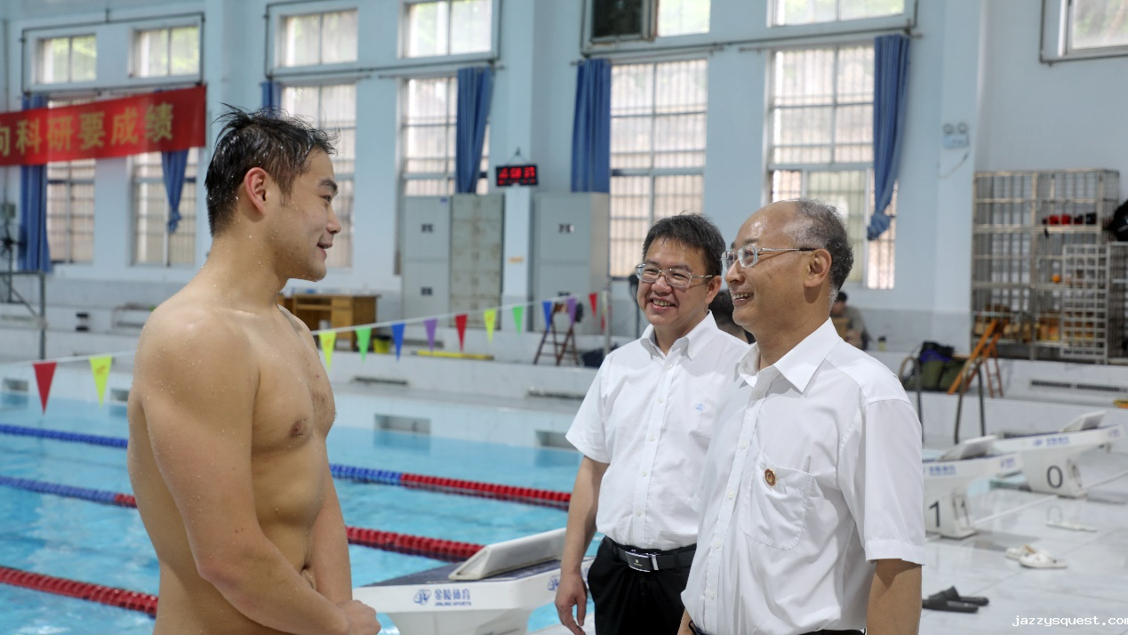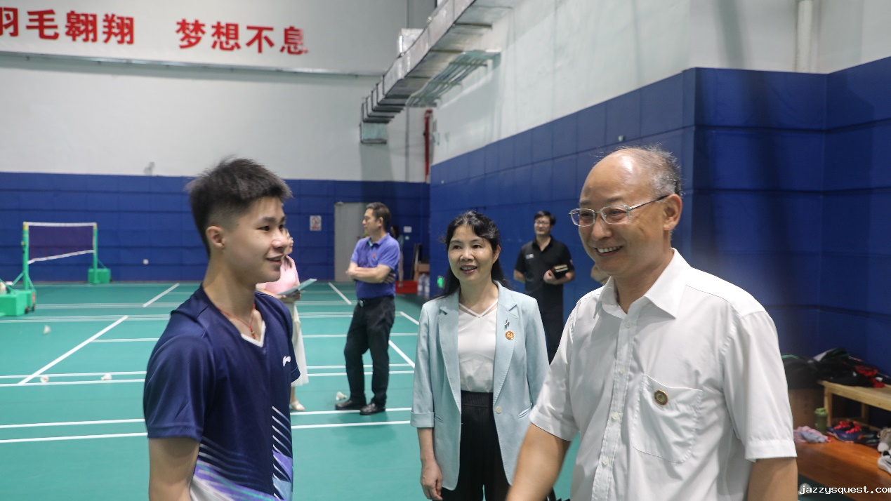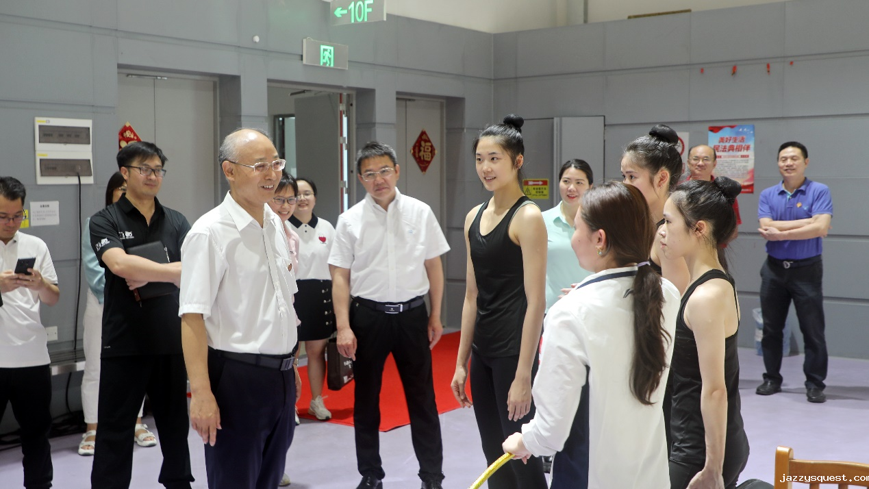 签约仪式前,冯家勋一行参观了江南训练基地新综合馆、游泳馆、田径馆等场馆,现场观看摔跤、跆拳道、乒乓球、羽毛球、艺术体操、蹼泳等项目学生的学习、训练、工作情况。