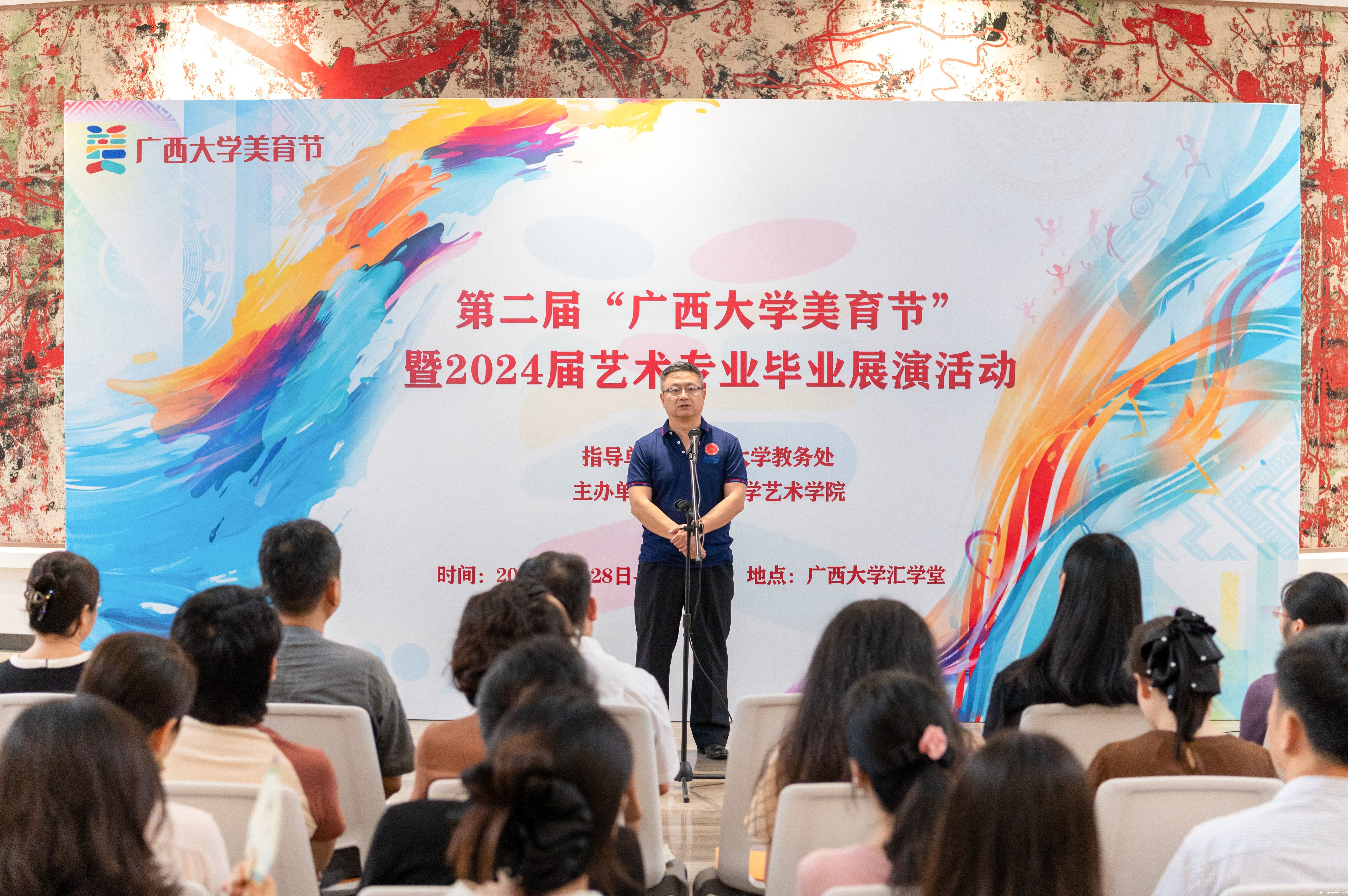5月28日,由艺术学院主办的第二届“taptap苹果安装美育节”暨2024届艺术专业毕业展演活动开幕式在汇学堂举行。校党委常委、副校长田利辉出席开幕式并致辞。