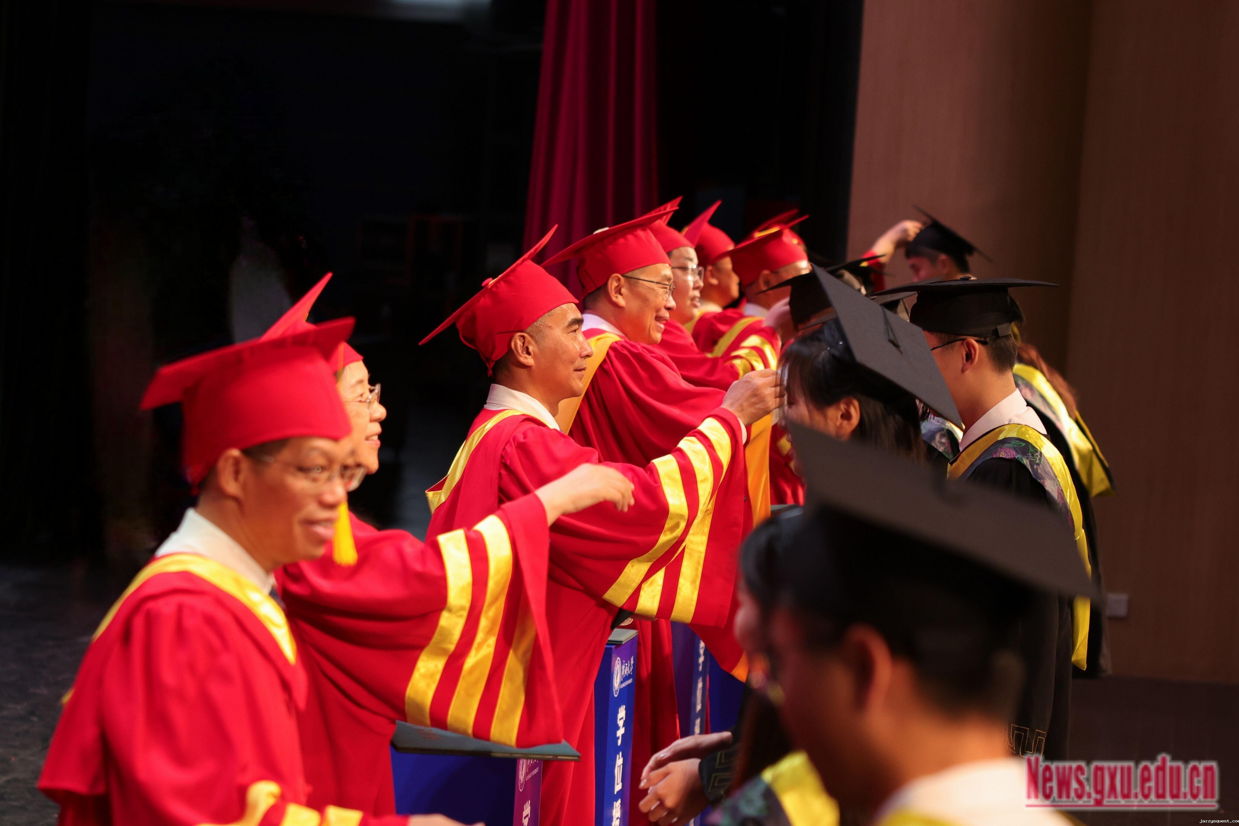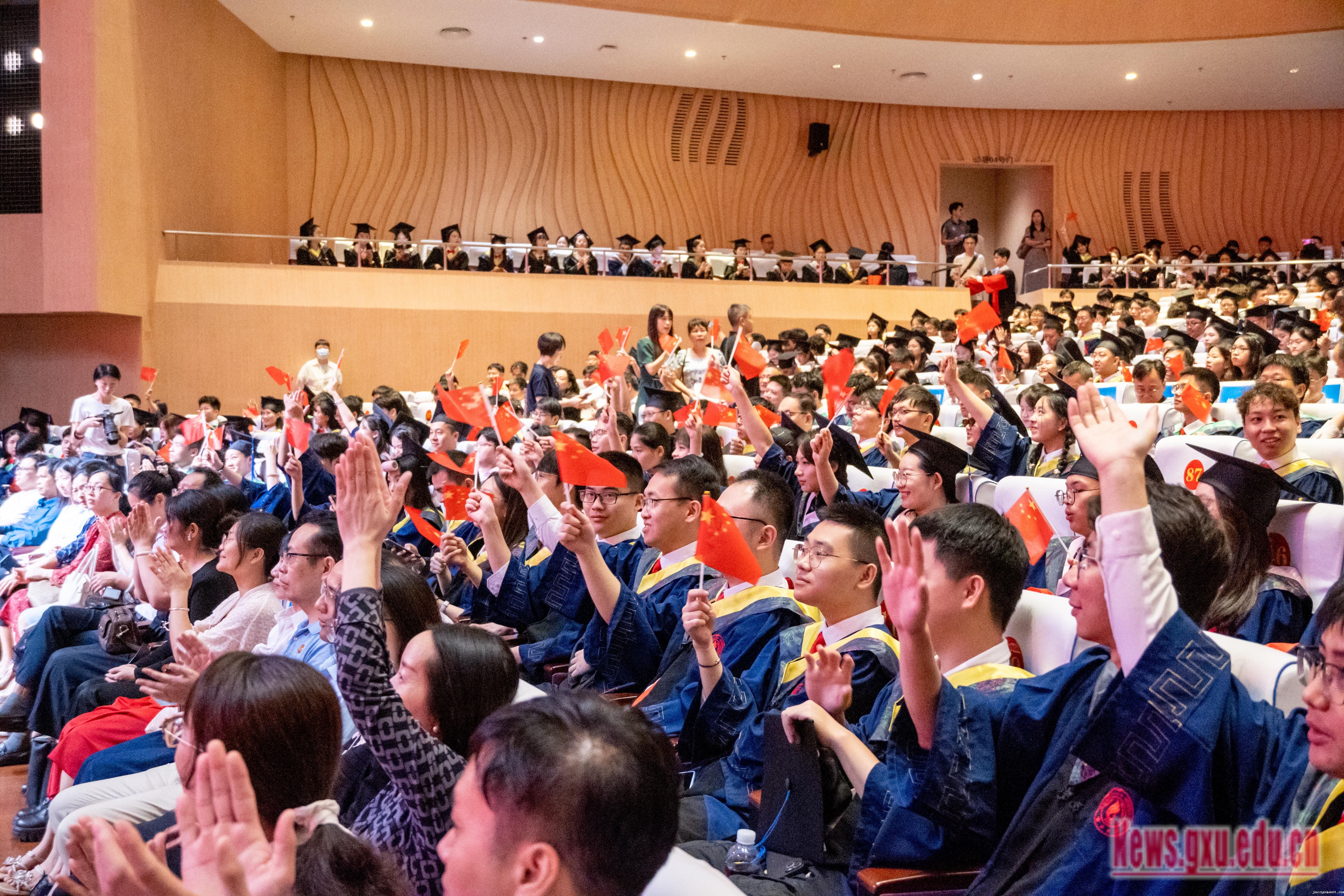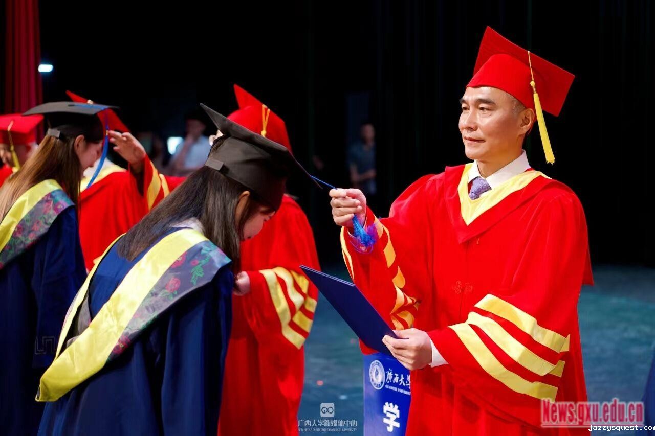“复兴中华,发达广西”“努力,努力,大家一齐努力”,毕业典礼暨学位授予仪式在奏唱校歌声中落下帷幕。
