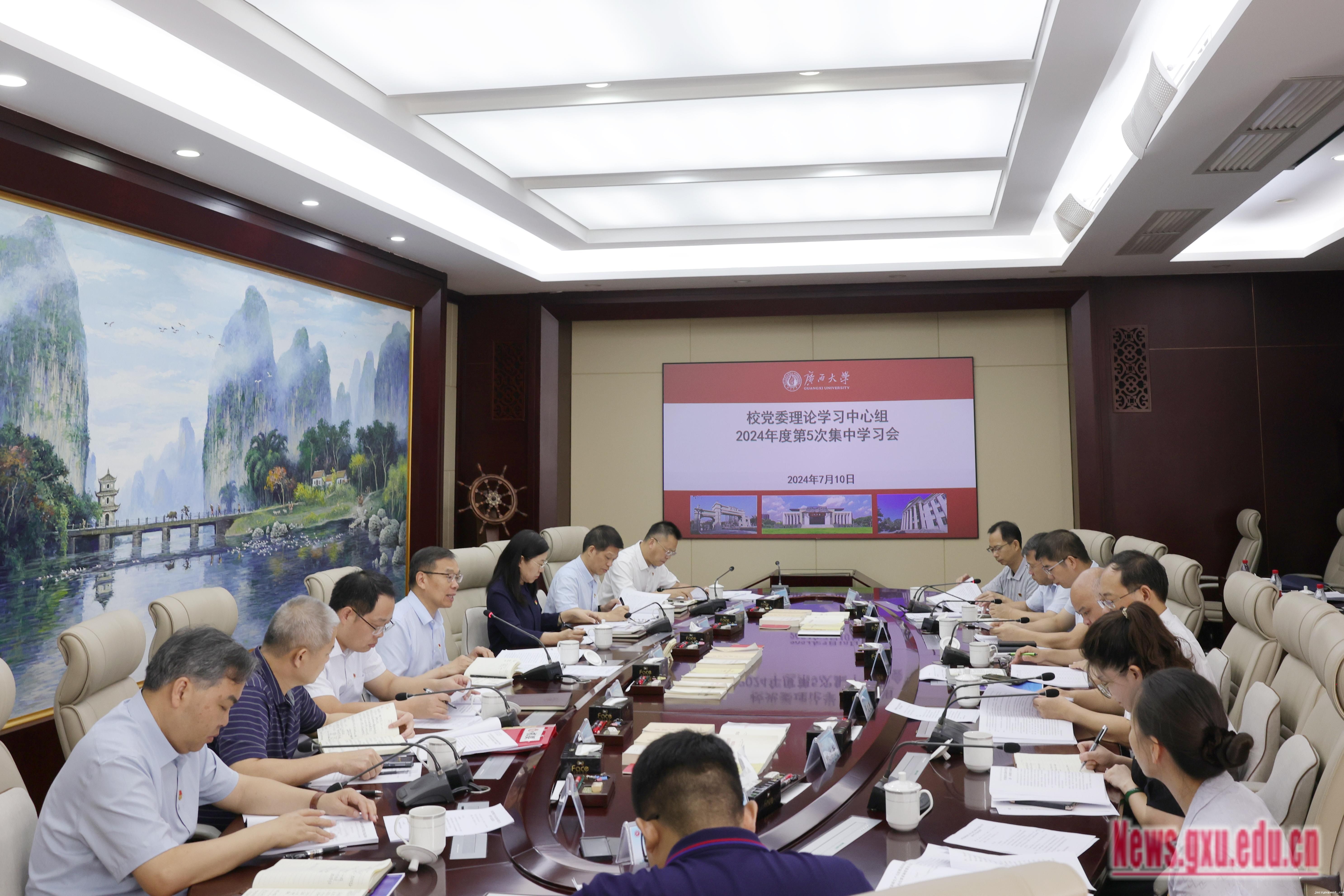 7月10日,校党委理论学习中心组召开2024年度第5次集中学习研讨会,会议专题深入学习习近平新时代中国特色社会主义思想,跟进学习习近平总书记近期重要讲话和重要指示批示、文章回信精神,学习贯彻中央、自治区有关文件精神。受自治区政协副主席、校党委书记王乃学委托,校党委副书记、校长韩林海主持会议并作总结讲话。