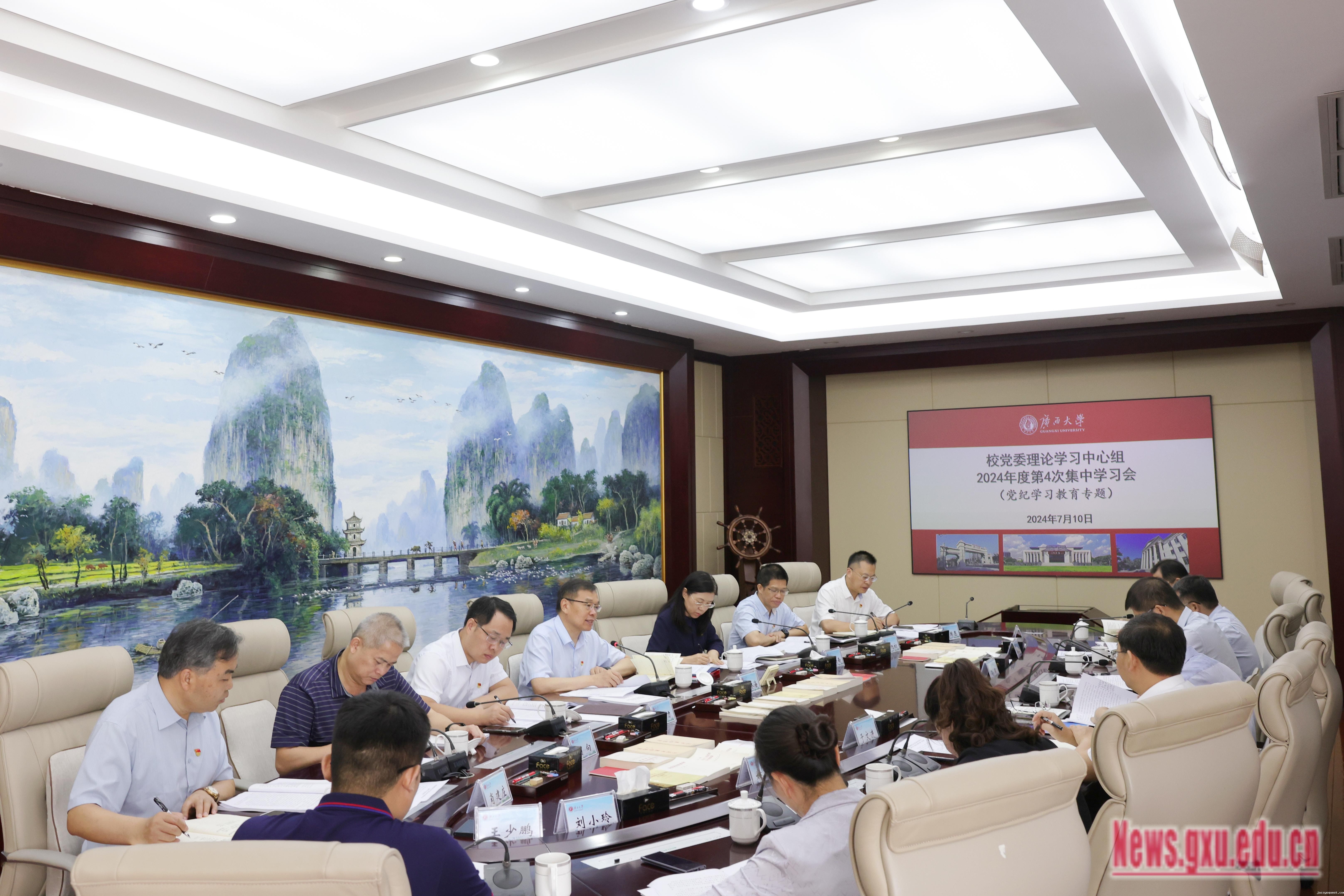 7月10日,校党委召开理论学习中心组2024年度第4次集中学习会,认真学习领会习近平总书记关于全面加强党的纪律建设的重要论述,集中学习《中国共产党纪律处分条例》(以下简称《条例》),聚焦“工作纪律”和“生活纪律”主题开展专题研讨。受自治区政协副主席、校党委书记王乃学委托,校党委副书记、校长韩林海主持研讨会并作总结讲话。
