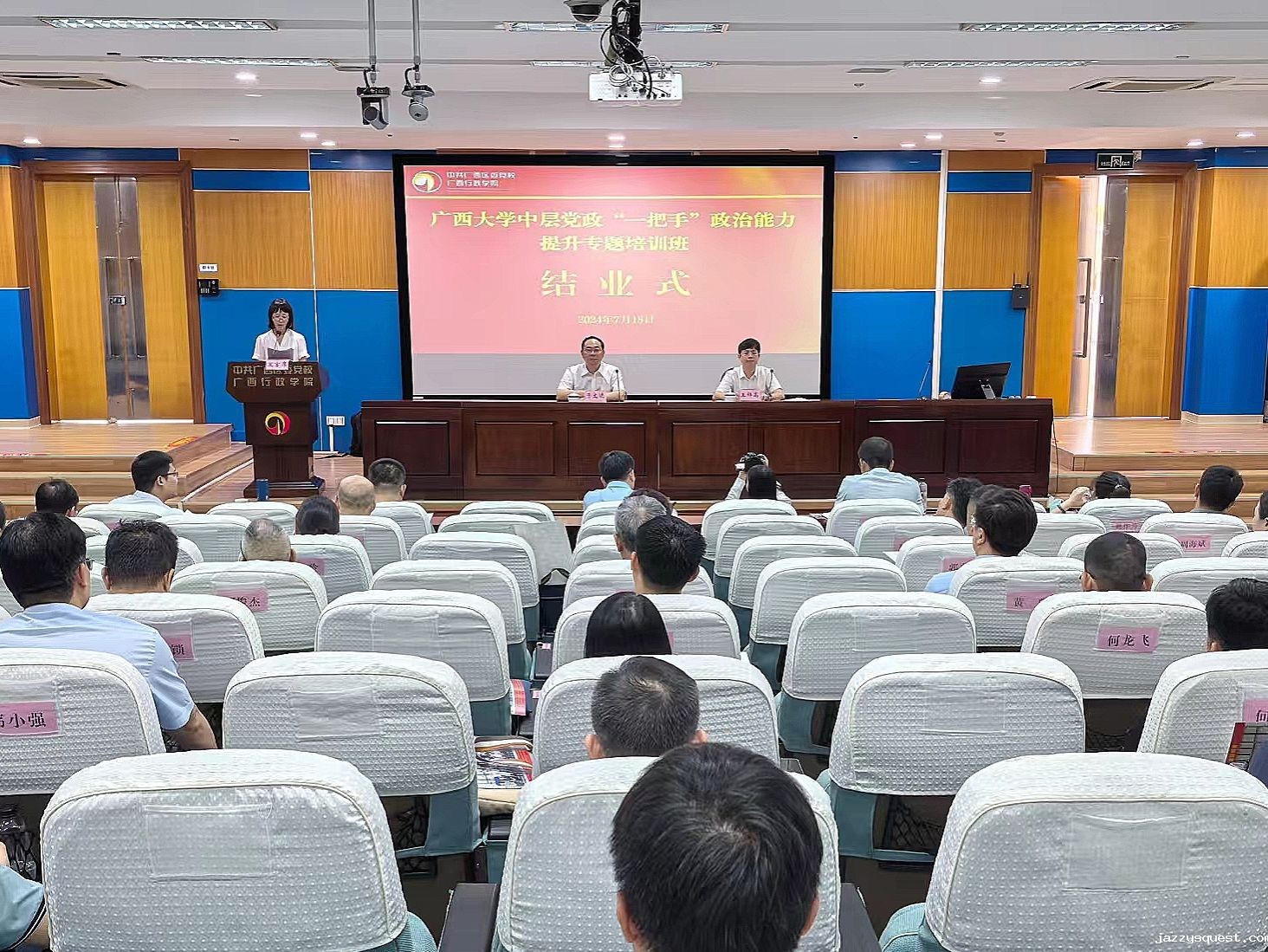 近日,学校中层党政“一把手”政治能力提升专题培训班在中共广西区委党校举办。校党委副书记马献力出席开班仪式并讲话,校党委常委、副校长于文进出席结业仪式并讲话。