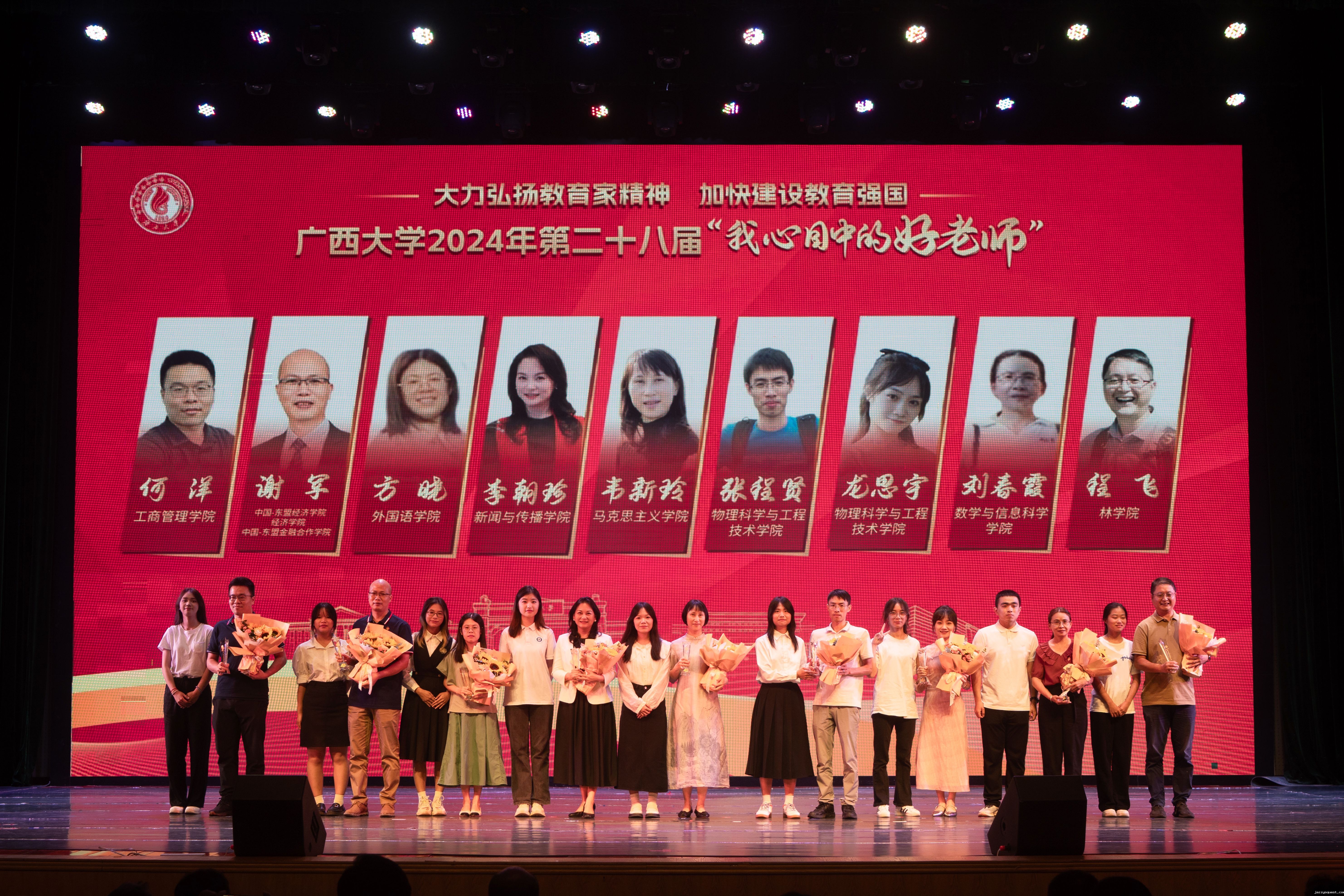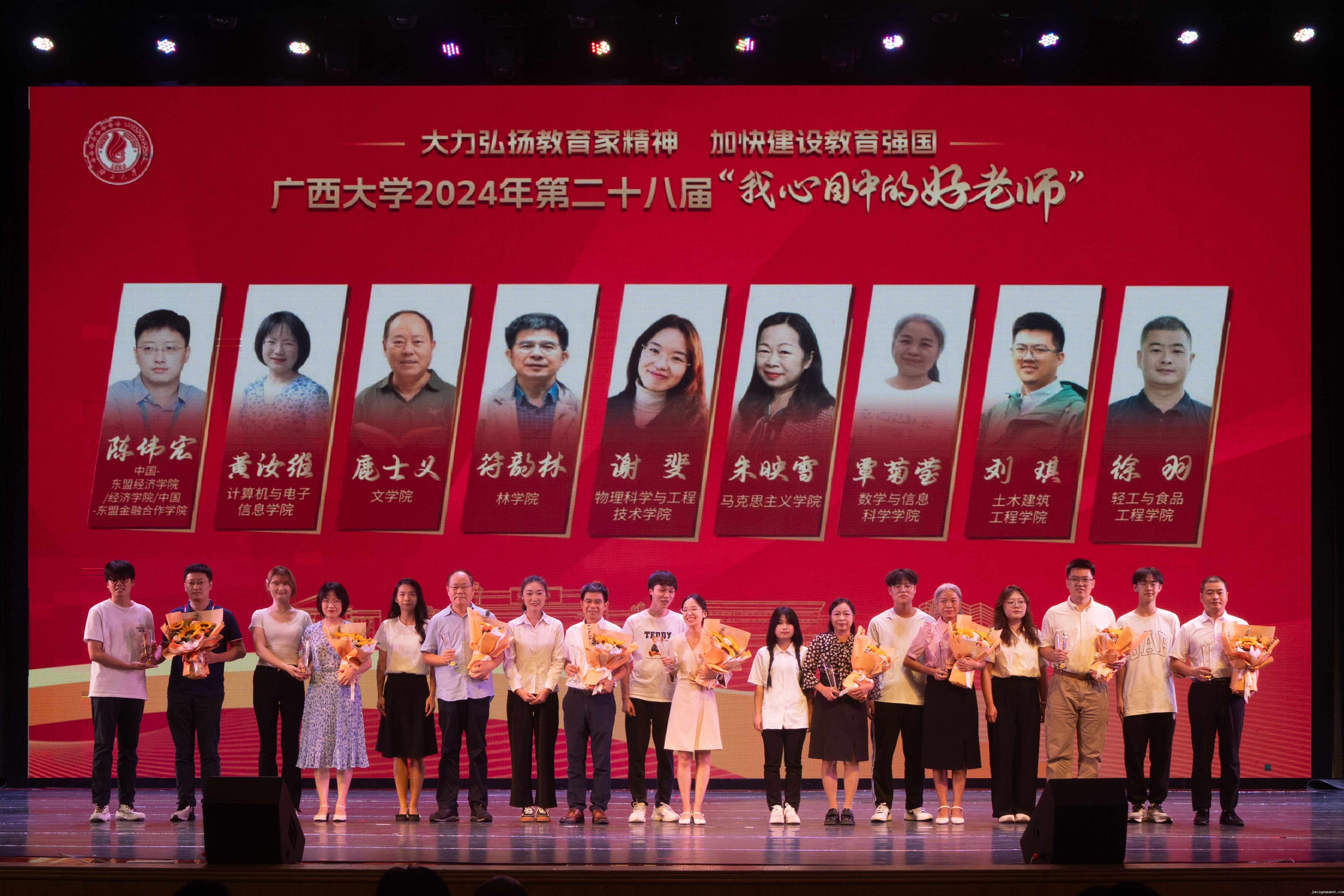 为庆祝第40个教师节,大力弘扬教育家精神,营造良好的校风、教风、学风,9月10日,我校在大礼堂举行taptap苹果安装2024年第二十八届“我心目中的好老师”颁奖典礼。校党委副书记、校长韩林海,校党委副书记、自治区纪委监委驻taptap苹果安装纪检监察组组长、校纪委书记金顺南,校党委常委、副校长宁旭初,副校长、教务长冯家勋,校党委常委、副校长刘向、夏国恩、于文进出席观礼。