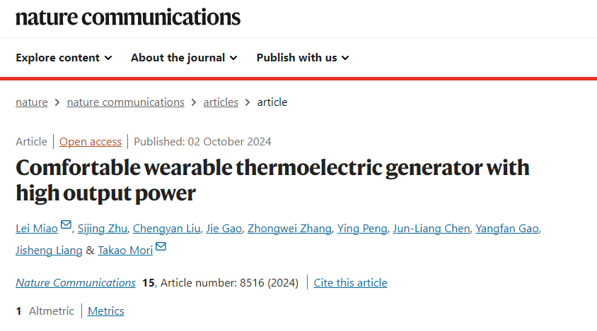 近期,我校物理科学与工程技术学院苗蕾教授团队在可穿戴热电发电机的舒适性和设计策略方面取得重要进展。该研究提出了一种基于经典夹层结构热电模型的高输出功率、舒适可穿戴热电发电机系统的新设计。研究成果以“Comfortable wearable thermoelectric generator with high output power”为题,发表在国际顶级期刊Nature Communications上。该论文的第一作者系物理科学与工程技术学院教授苗蕾,博士后朱思靖为共同第一作者,通讯作者系苗蕾教授和筑波大学Takao Mori教授,我校为该论文的第一完成单位。