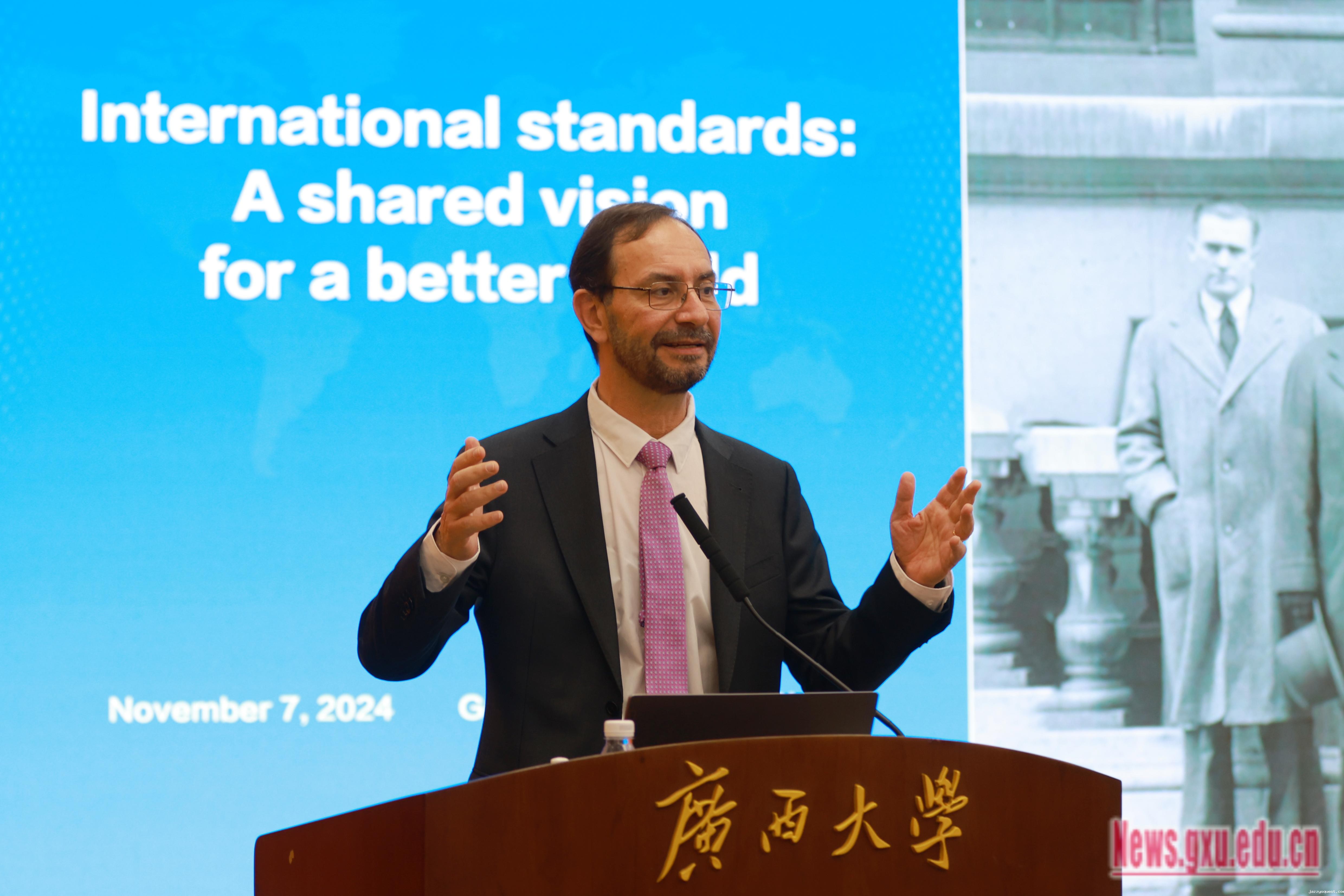 揭牌仪式前,穆希卡为taptap苹果安装等高校的200余名师生代表作题为“国际标准:美好世界的共同愿景”的主旨演讲,并与活动现场师生代表就如何参与ISO国际标准制定、国际标准化人才培养、标准化在减少碳排放方面的贡献等话题进行交流互动。