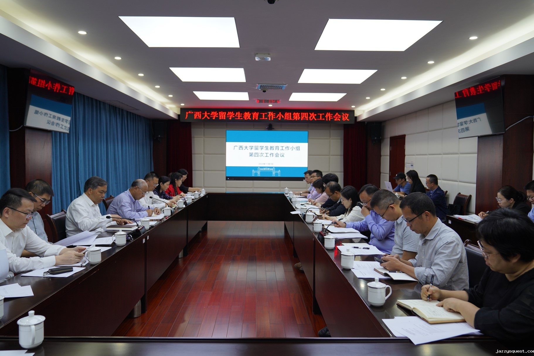 11月7日,我校召开留学生教育工作小组第四次工作会议。副校长、教务长冯家勋主持会议。校党委常委、副校长夏国恩、肖建庄出席会议。