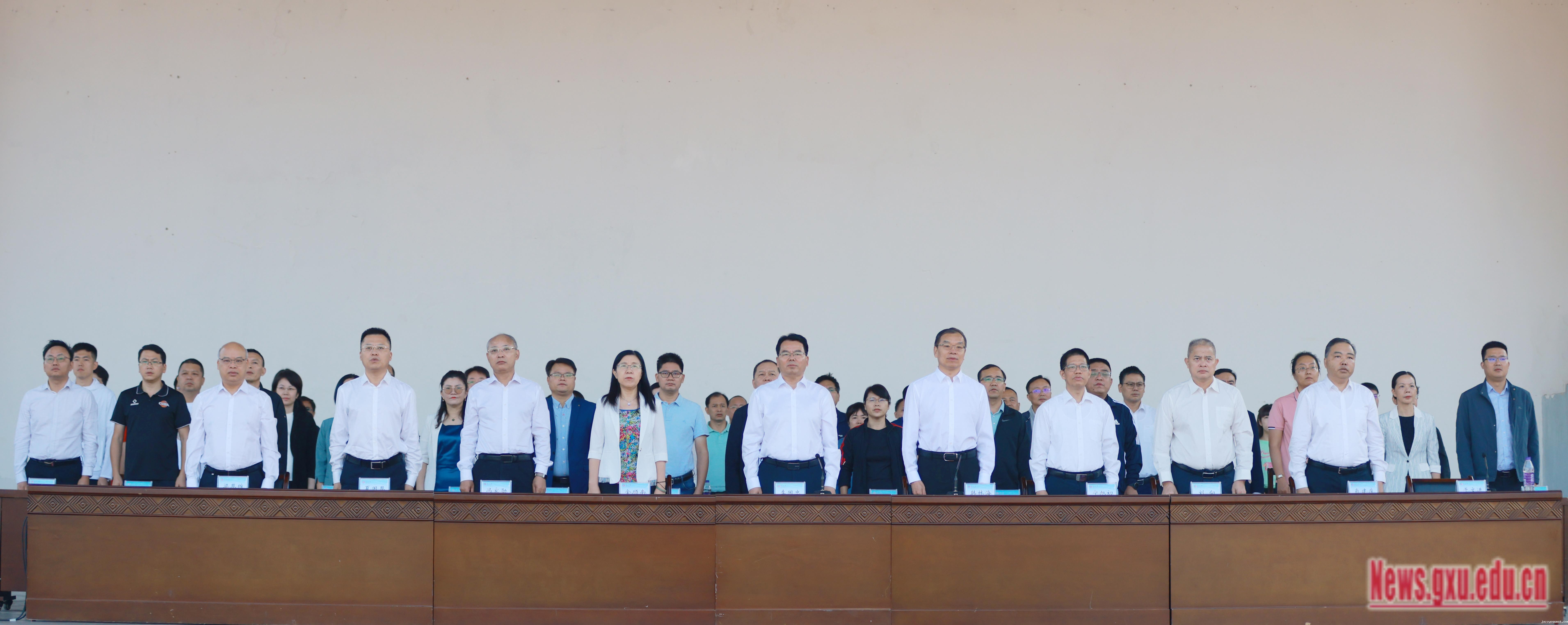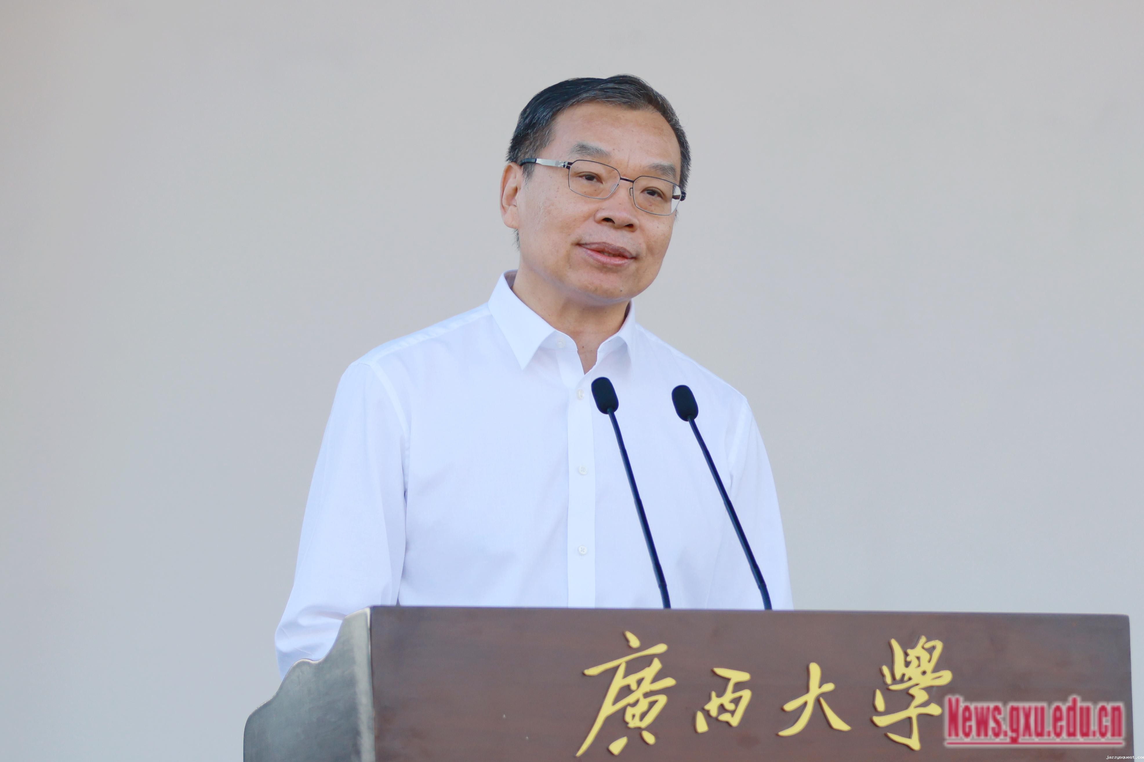 韩林海在致辞中指出,学校认真贯彻落实习近平总书记关于教育、体育的重要论述,持续完善德智体美劳“五育并举”的人才培养模式和质量保障体系,逐步构建“基本运动+专项运动+广西少数民族体育运动”通专融合体育教学模式,大力提升体育运动设施条件,不断繁荣校园体育文化。今年以来,学校体育工作取得了丰硕成果,体育设施提档升级,群众体育蓬勃发展,竞技体育捷报频传。学校将坚持全校“一盘棋”的思想,继续优化资源配置,改善体育运动设施和条件,不断完善体育教育质量保障体系和评价体系,绵绵用力、久久为功,推动体育工作取得新进展、实现新突破。希望广大师生积极参与体育活动和各级各类赛事,在体育中享受乐趣、增强体质、健全人格、锤炼意志。