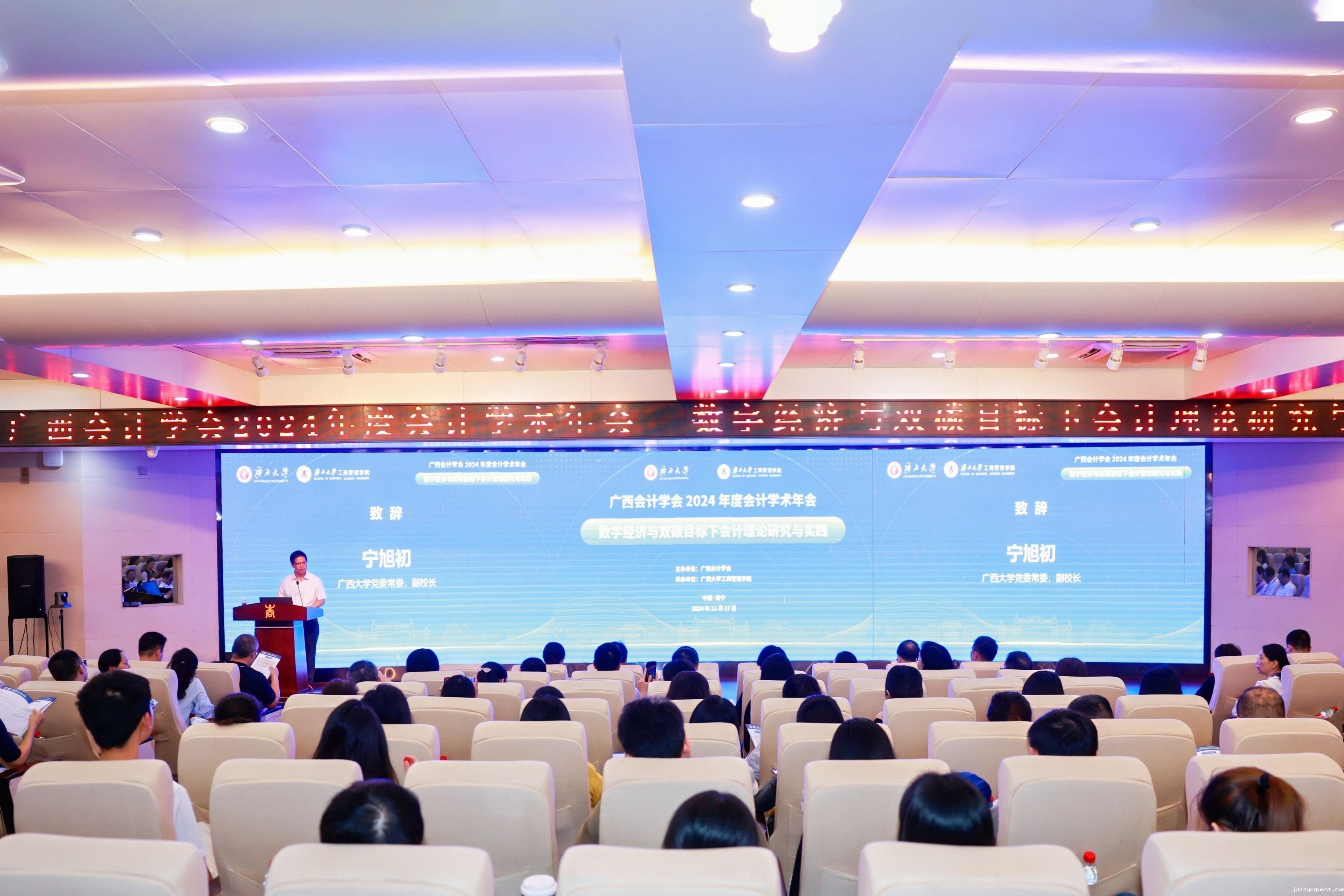 近日,由广西会计学会主办,taptap苹果安装工商管理学院承办的广西会计学会2024年度会计学术年会在我校举行。广西壮族自治区财政厅副厅长陈海涛,我校党委常委、副校长宁旭初,广西会计学会会长兰丽萍出席开幕式并致辞。校党委常委、副校长夏国恩会见与会嘉宾。
