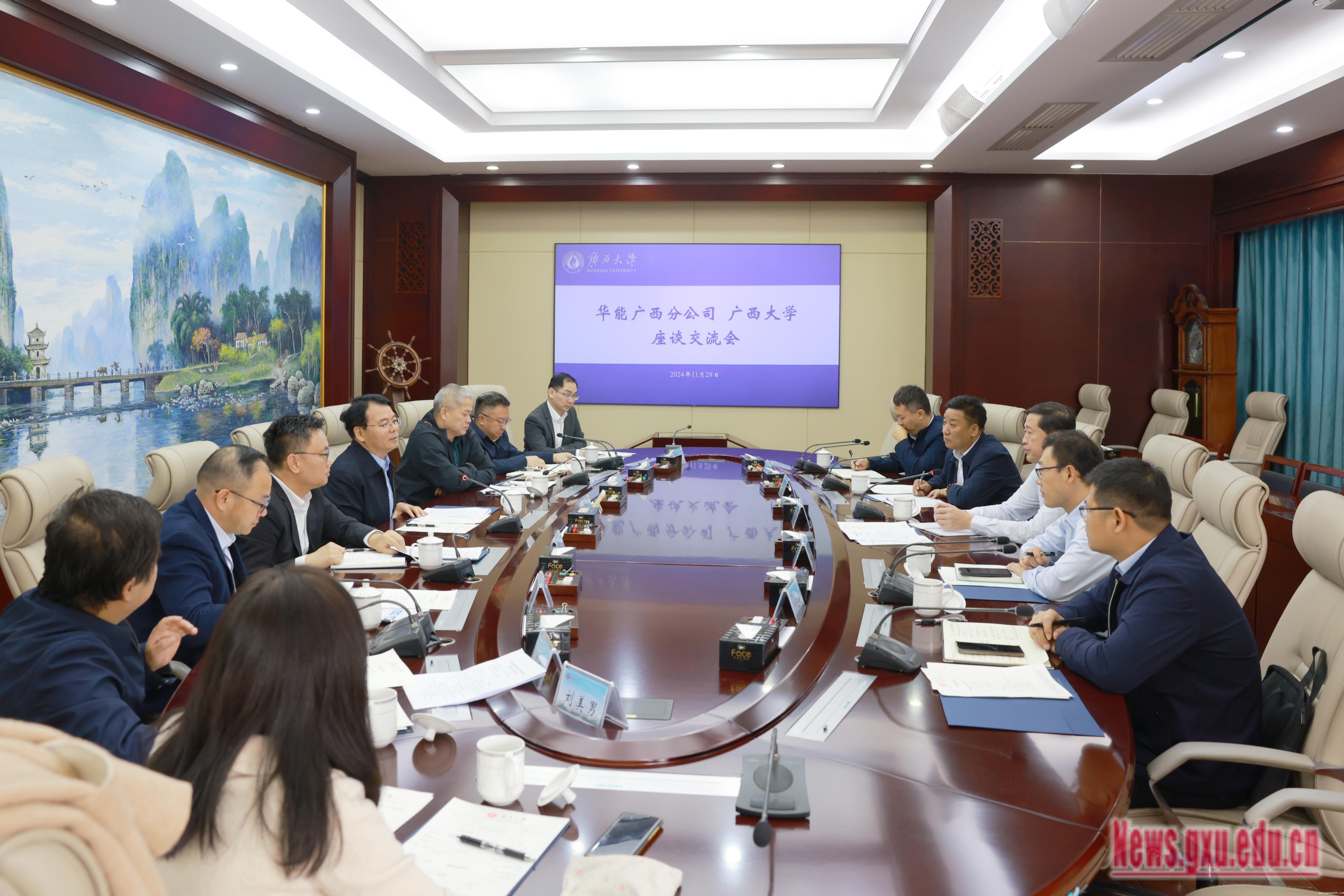 华能广西分公司办公室、规划部及下属企业负责同志,我校科研院、电气工程学院、资源环境与材料学院、经济学院负责同志参加座谈会。