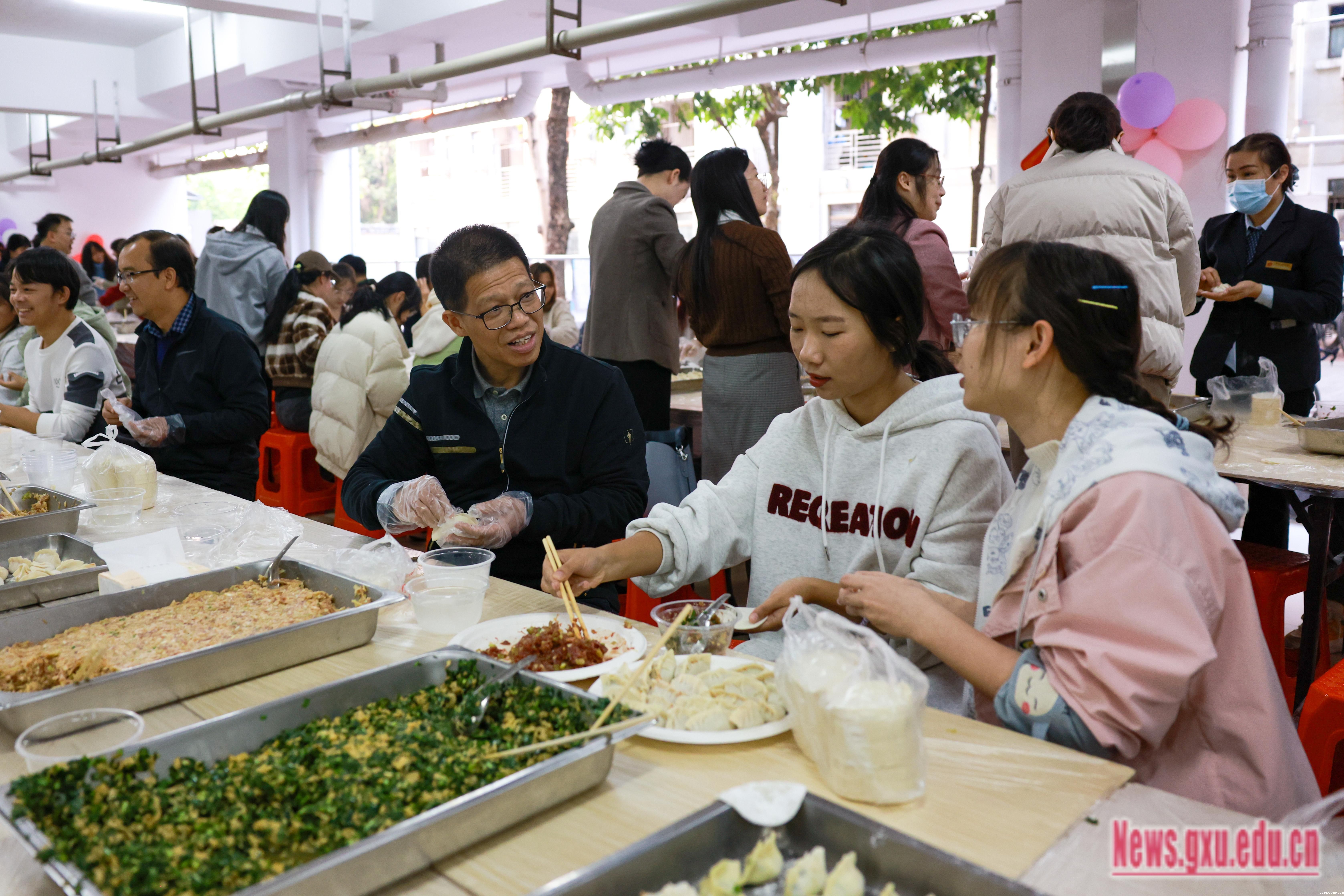 师生共同包饺子、话家常