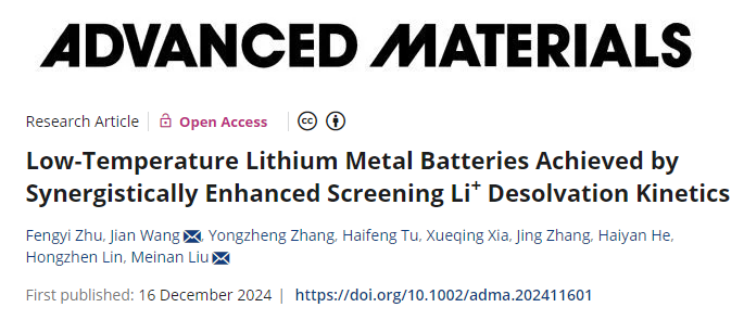 近日,我校资源环境与材料学院先进储能材料与器件团队在低温锂电池研究领域取得重要进展,研究成果以“Low-Temperature Lithium Metal Batteries Achieved by Synergistically Enhanced Screening Li+ Desolvation Kinetics”为题,发表在国际顶级学术期刊 Advanced Materials上。该论文的通讯作者为刘美男教授,我校为该论文第一完成单位。该项目研究得到了国家自然科学基金和taptap苹果安装科研基金等项目支持。