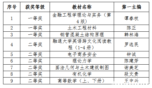 获评广西普通本科高校优秀教材9部,其中一等奖3部,二等奖6部,获奖总数比上一轮多4部。