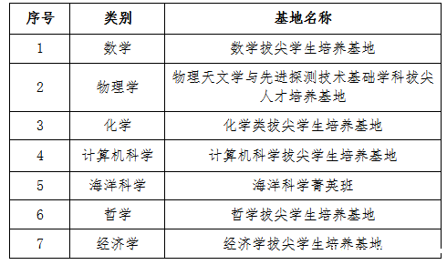 “数学拔尖学生培养基地”等7个基地入选自治区级基础学科拔尖学生培养基地。