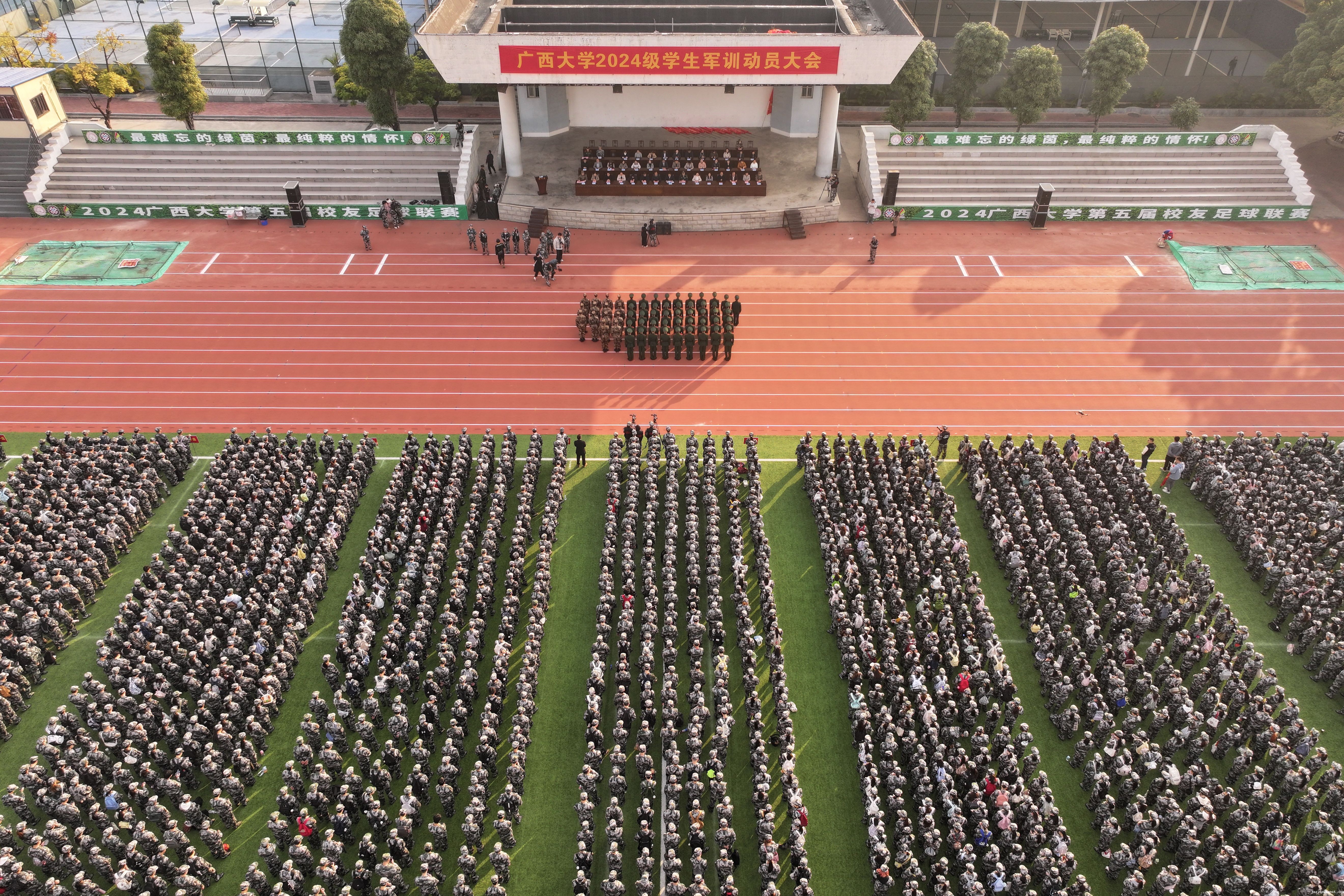 1月6日,我校2024级学生军训动员大会在西校园田径场举行。校党委常委、副校长于文进,校军训领导小组、武警南宁支队参训部队、军训团成员、各军训连负责老师以及全体2024级学生约5800人参加大会。