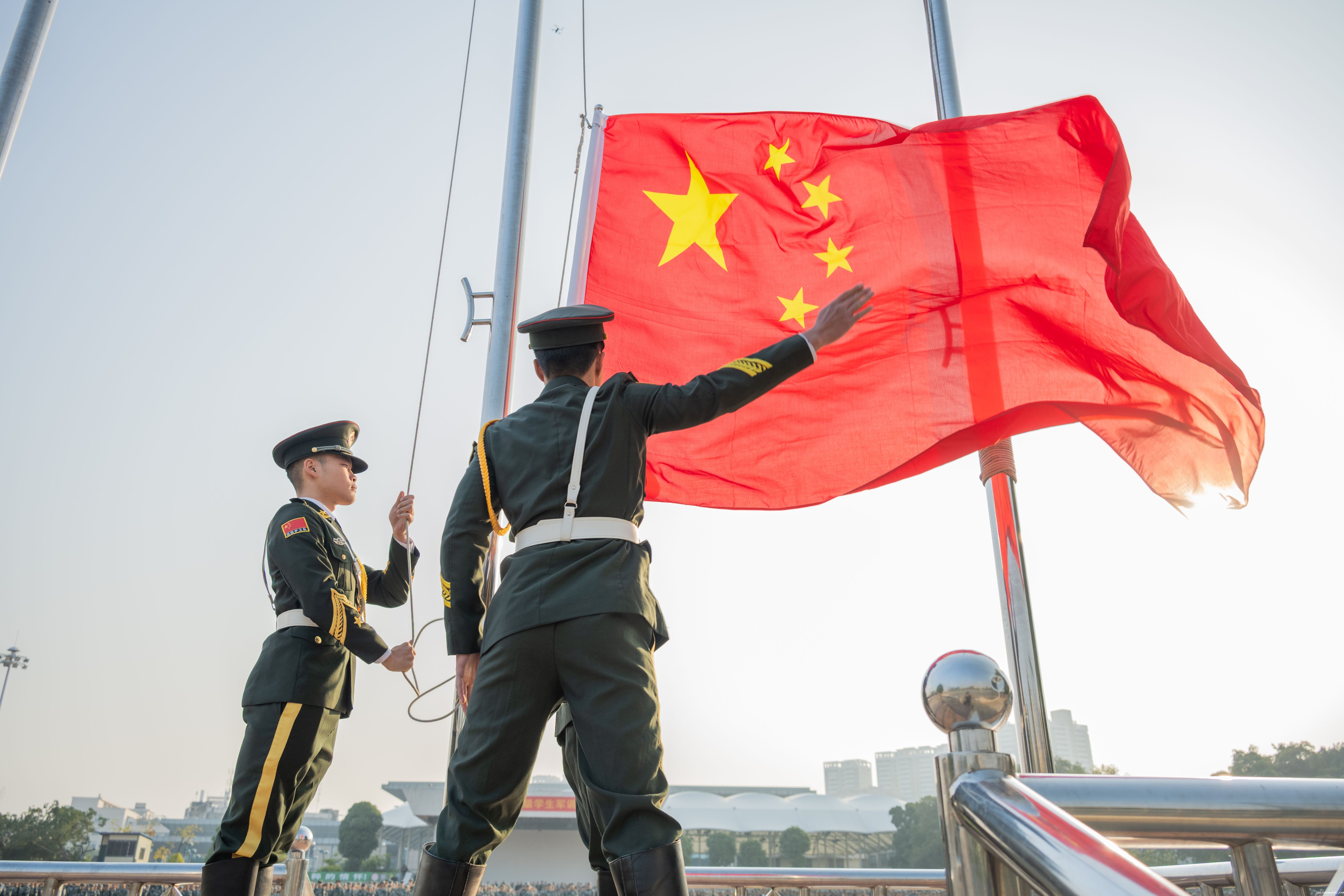 伴随着庄严的国歌声,五星红旗迎风飘扬,军训动员大会正式开始。