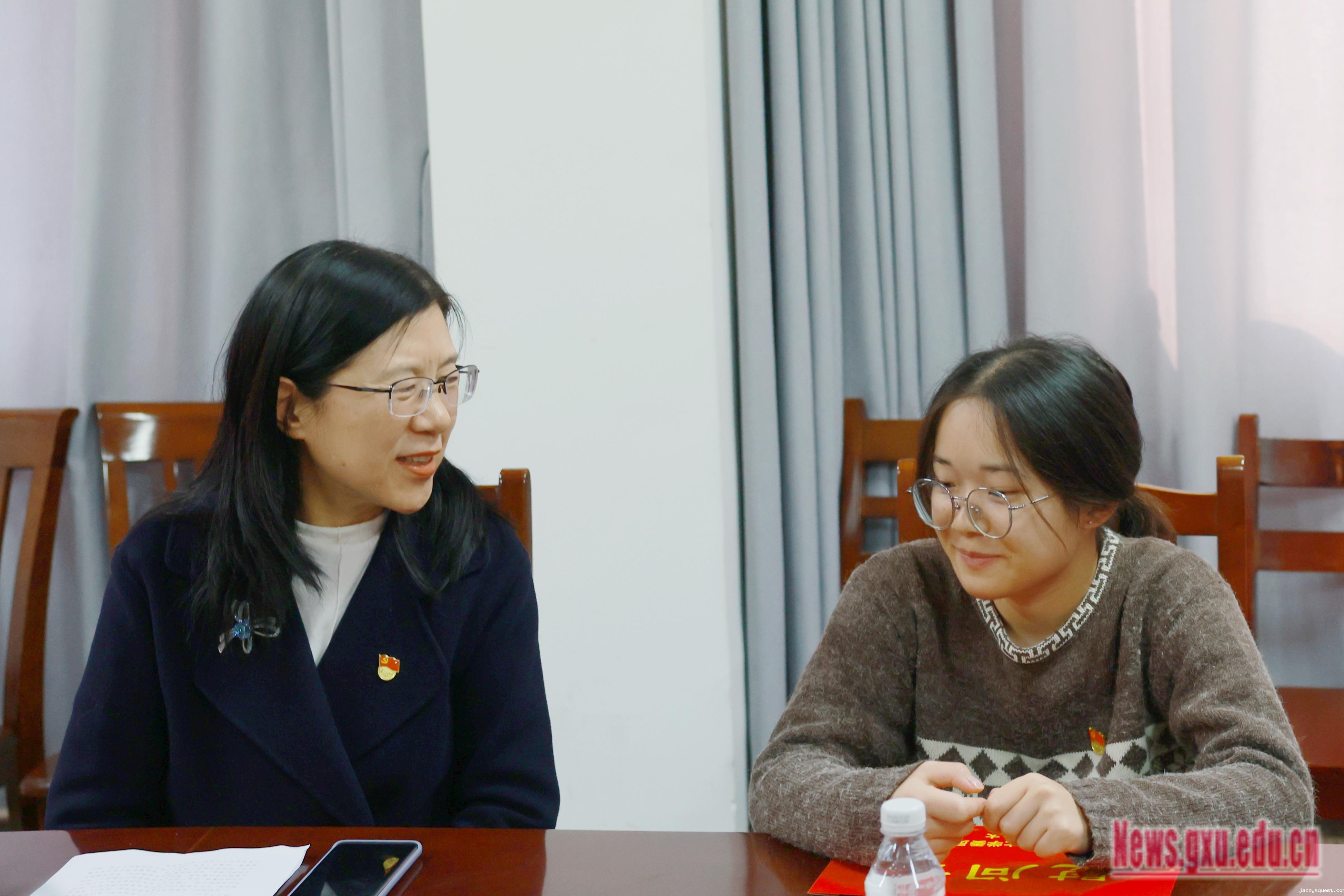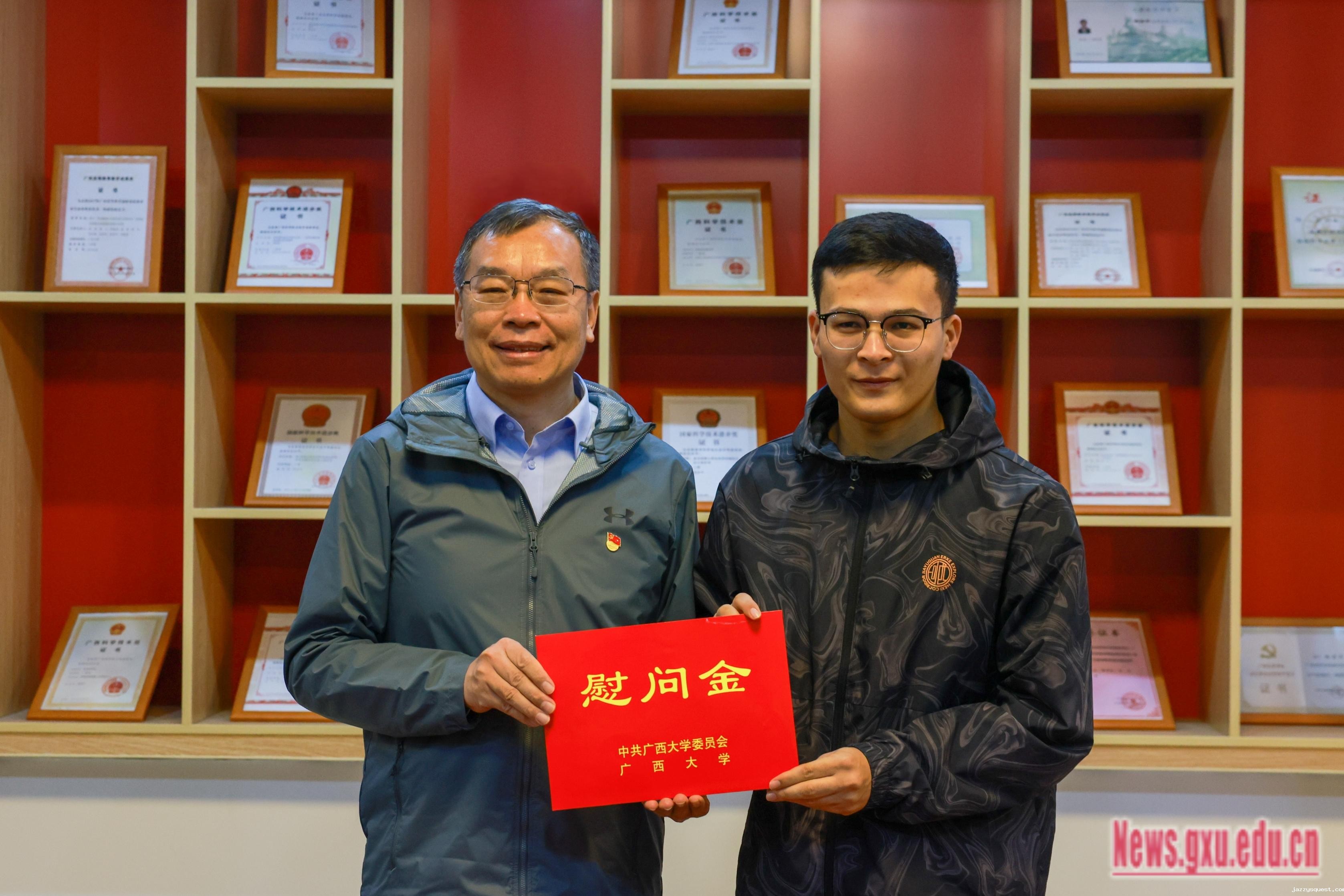 金顺南先后到工商管理学院、电气工程学院,慰问学生党员韦尹洁和李智婷,了解她们的家庭和学习生活情况,表达了党组织对她们的深切关怀,叮嘱她们要坚定信念,相信组织、感恩组织,将关怀转化为学习动力,并鼓励她们在学业之余积极参与社会实践,将所学知识与社会需求相结合,为国家和社会多作贡献。