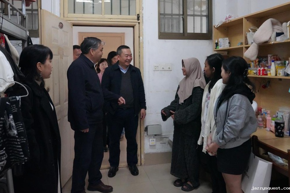 2月19日,校党委常委、副校长肖建庄走访来华留学生宿舍,深入了解来华留学生的假期生活状况,并向他们致以问候与关怀。