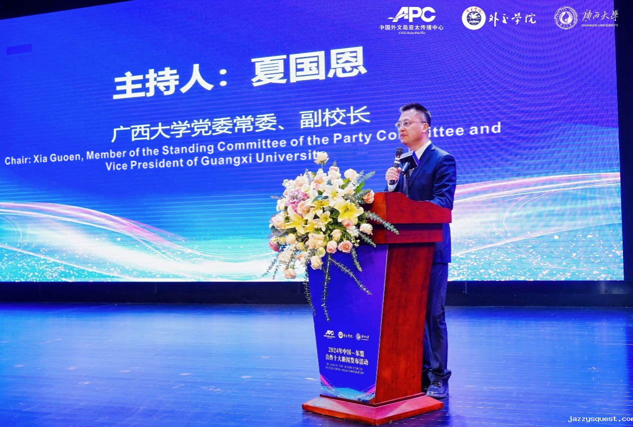 2月27日,在中国外文局、外交学院、广西壮族自治区党委宣传部的指导下,由中国外文局亚太传播中心、外交学院亚洲研究所、taptap苹果安装联合主办,taptap苹果安装中国—东盟研究院/广西创新发展研究院、taptap苹果安装中国—东盟经济学院承办的“2024年中国—东盟合作十大新闻”发布活动在我校举行。校党委书记李国忠出席活动并致欢迎辞。校党委常委、副校长夏国恩主持活动。中国外文局总编辑高岸明、广西壮族自治区党委宣传部副部长黎攀、柬埔寨驻南宁总领事馆总领事唐肃安、外交学院副院长高飞、中国—东盟博览会秘书处副秘书长梁艺光出席活动并致辞。