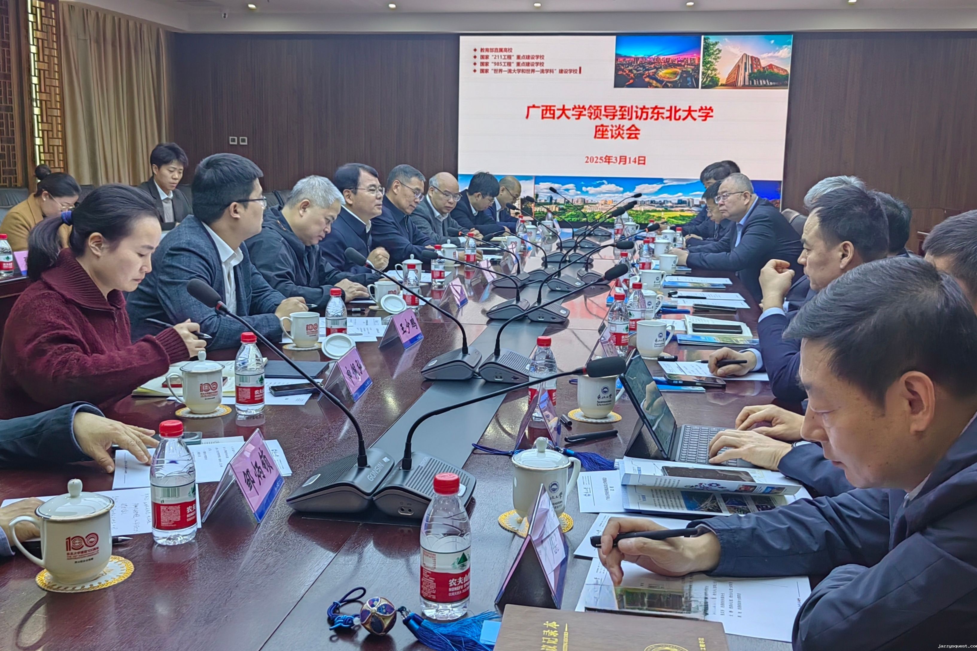 3月14日,校党委书记李国忠,党委副书记、校长韩林海带队赴东北大学调研,双方围绕交叉学科建设、青年人才交流培养、重点学科特色发展、党建活动等方面进行深入交流。东北大学党委书记郭海,党委副书记、校长冯夏庭,党委常委、副校长王兴伟出席座谈会。我校党委常委、副校长刘向、梁恩维参加调研。