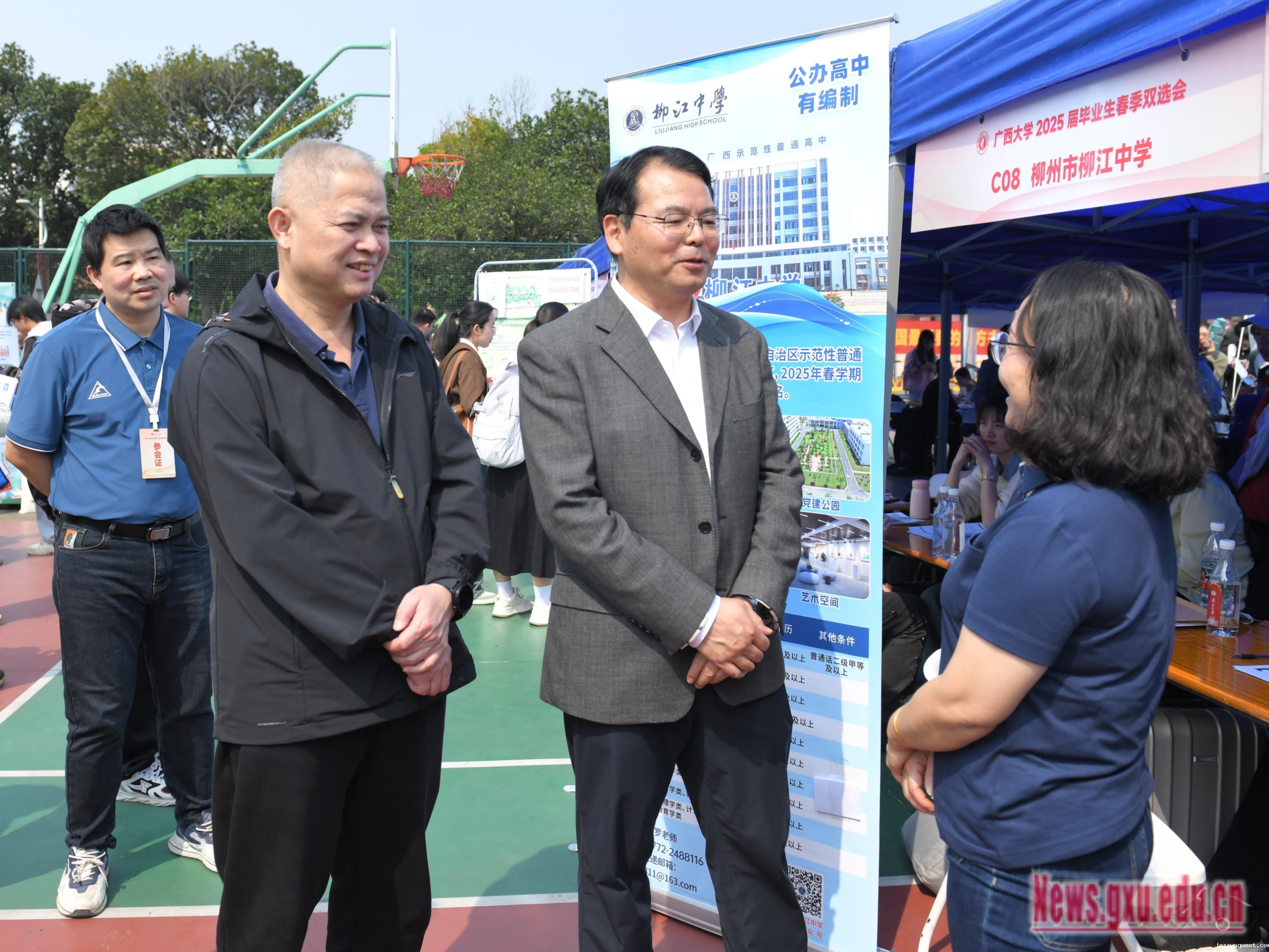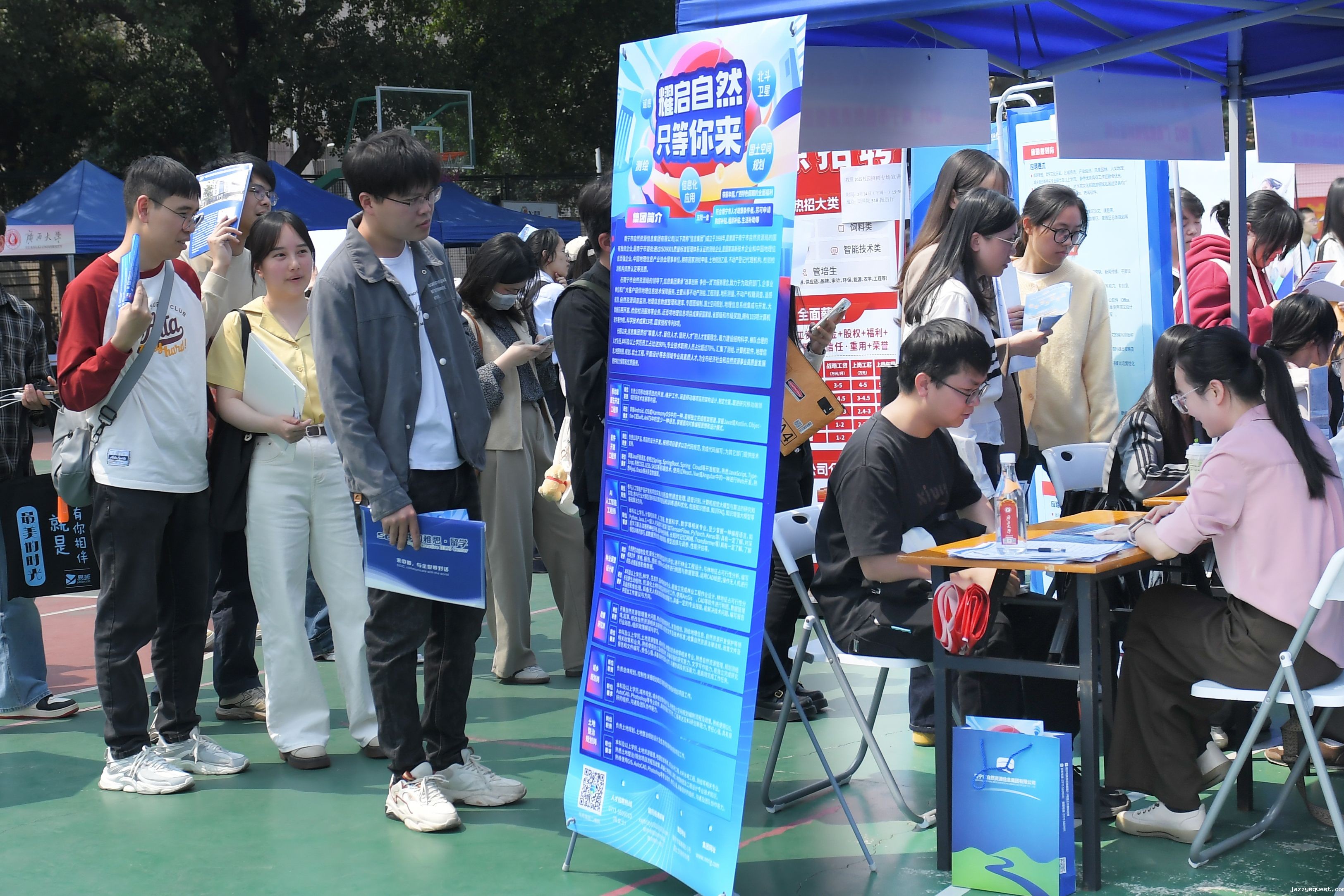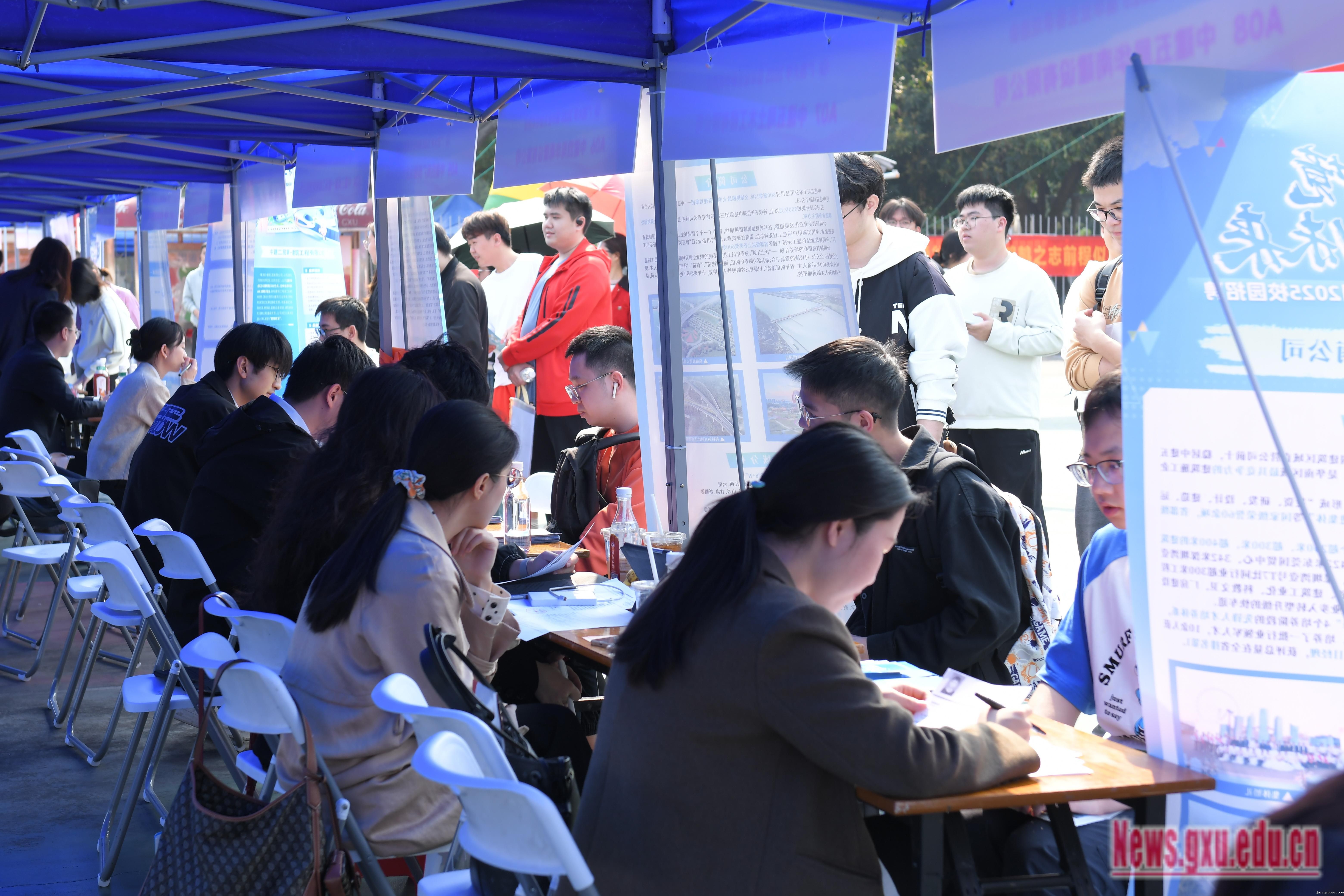 据悉,本次双选会设有央企国企、区外省市企事业单位、广西地市企业、校友企业等多个招聘专区,共吸引包括来自山东、广东等区内外的413家用人单位到校招聘,提供1.5万个就业岗位,涵盖信息技术、人工智能、装备制造、能源化工、教育科研、金融投资、文化传媒、生物医药、农林牧渔等多个行业领域。其中山东省菏泽市人力资源和社会保障局组织当地21家用人单位组团来我校招聘。双选会共吸引5000多名毕业生到现场求职。