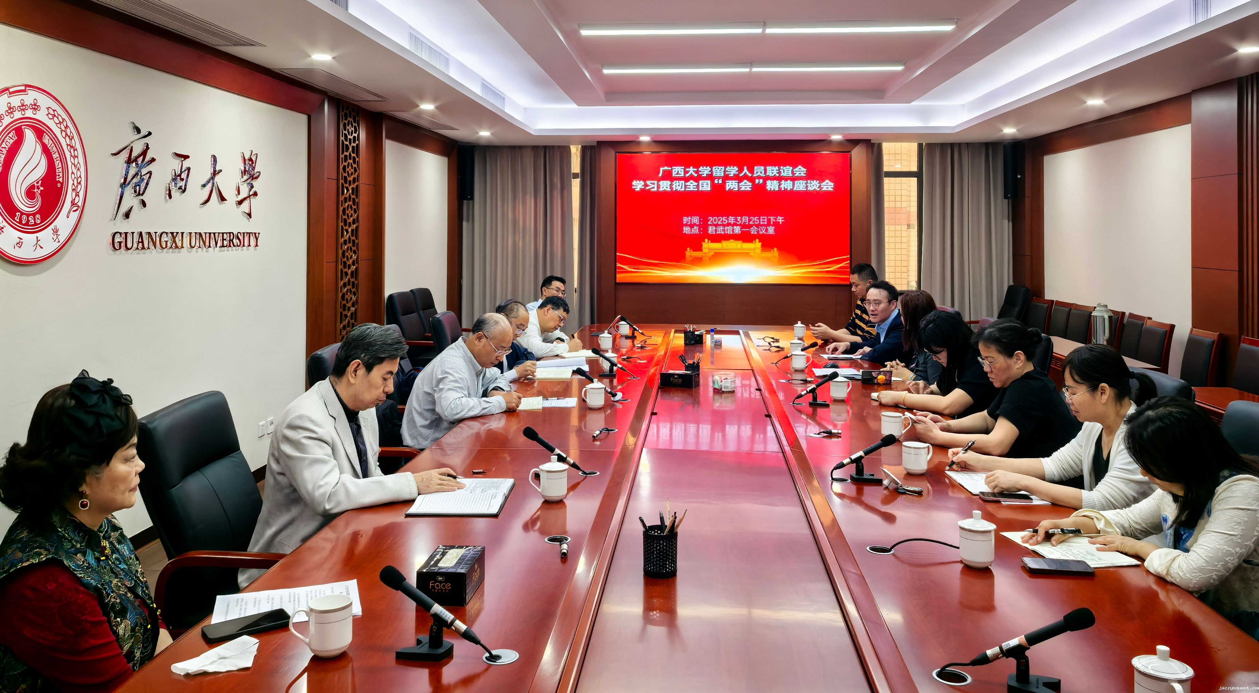 为深入学习贯彻全国两会精神,引导归国留学人员把思想和行动统一到党中央决策部署上,进一步增强使命感和责任感,3月25日,taptap苹果安装留学人员联谊会(以下简称留联会)召开学习贯彻全国两会精神座谈会。副校长、广西欧美同学会副会长、校留联会会长冯家勋参加会议并讲话。