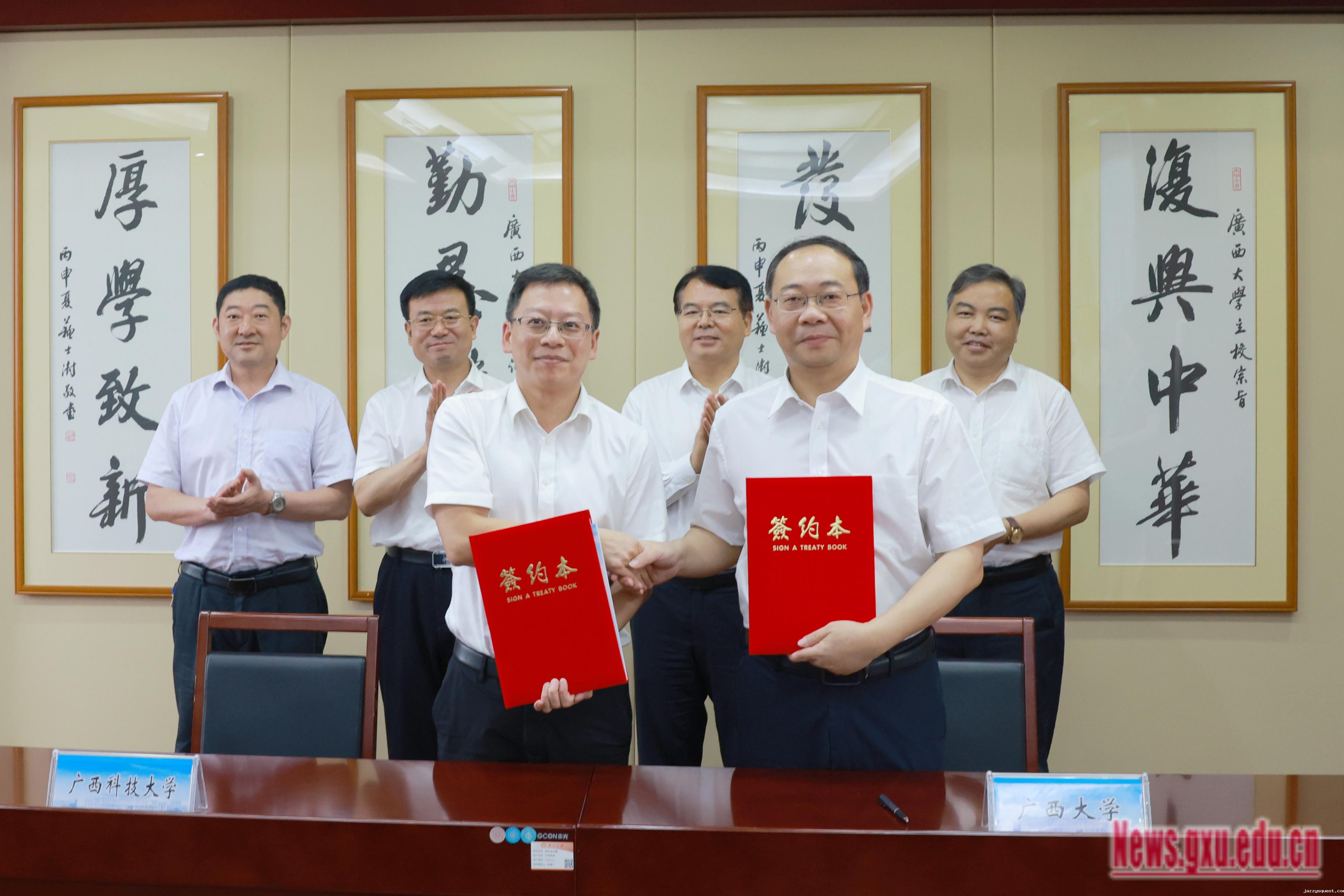 5月23日,我校与广西科技大学举行座谈会暨战略合作协议签约仪式。校党委书记李国忠,广西科技大学党委书记赵君、校长刘宝臣,校党委常委、副校长肖建庄出席座谈会暨签约仪式。校党委常委、副校长于文进与广西科技大学党委常委、副校长李健分别代表双方签署战略合作协议。