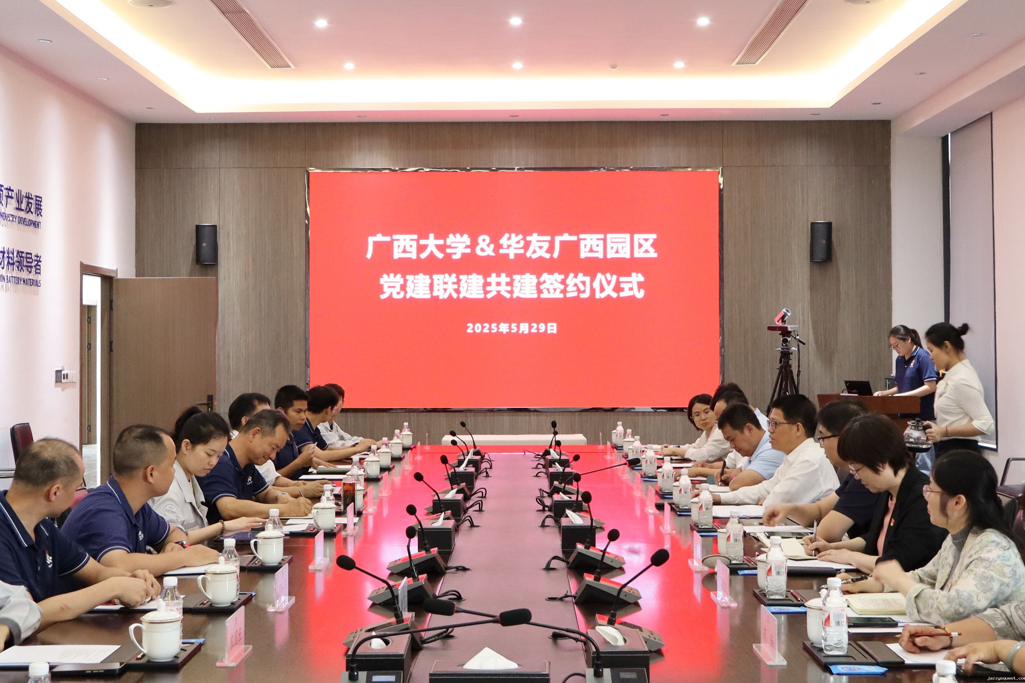资环材学院党委,资环材学院、化工学院5个教师党支部分别与华友广西产业园党委以及子公司党支部签订党建联建共建协议,将在科技攻关、人才联合培养等方面展开深入合作。双方还为化工学院与华创公司实践教育基地揭牌。